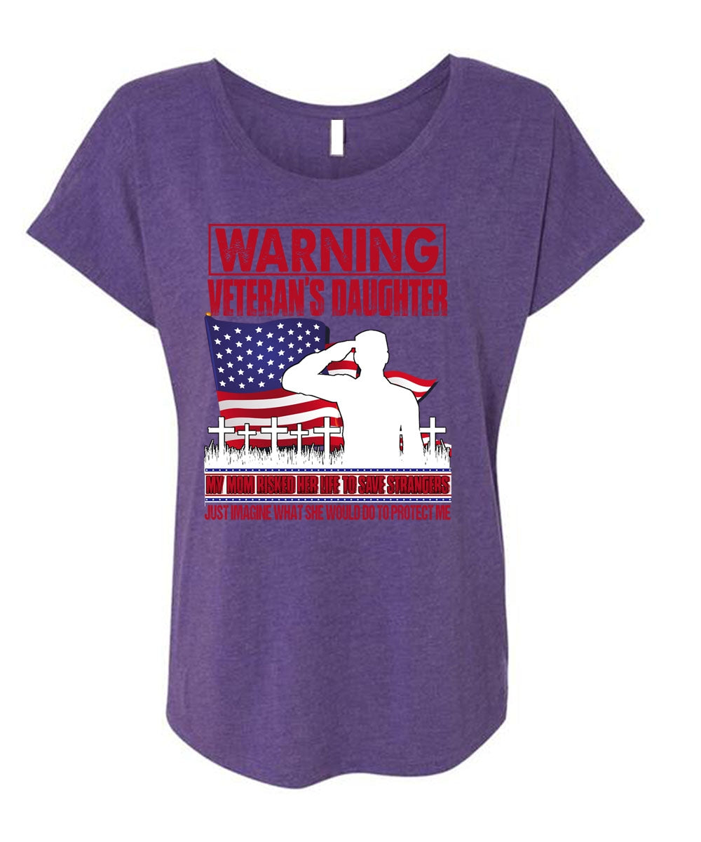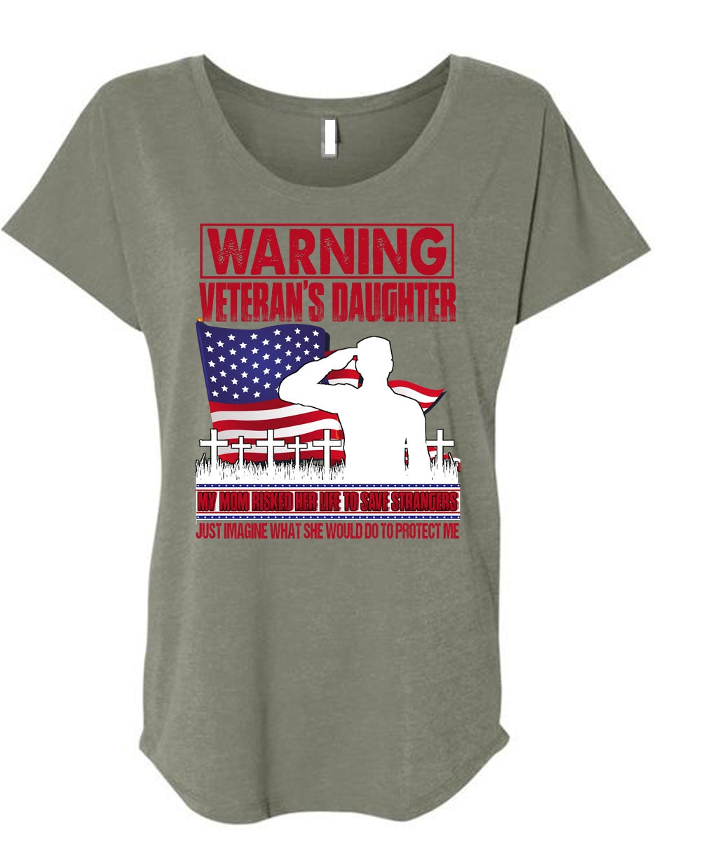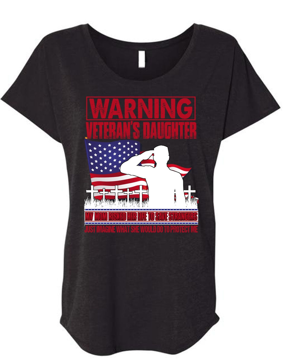 Warning Veteran's Daughter T Shirt, My Mom Risked Her Life T Shirt, Cool Shirt (Ladies' Triblend Dolman Sleeve)