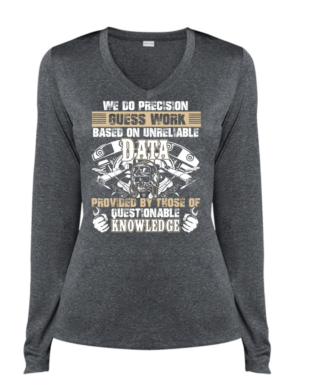 We Do Precision Guesswork T Shirt, I Love Mechanic T Shirt, Cool Shirt (Ladies LS Heather V-Neck)