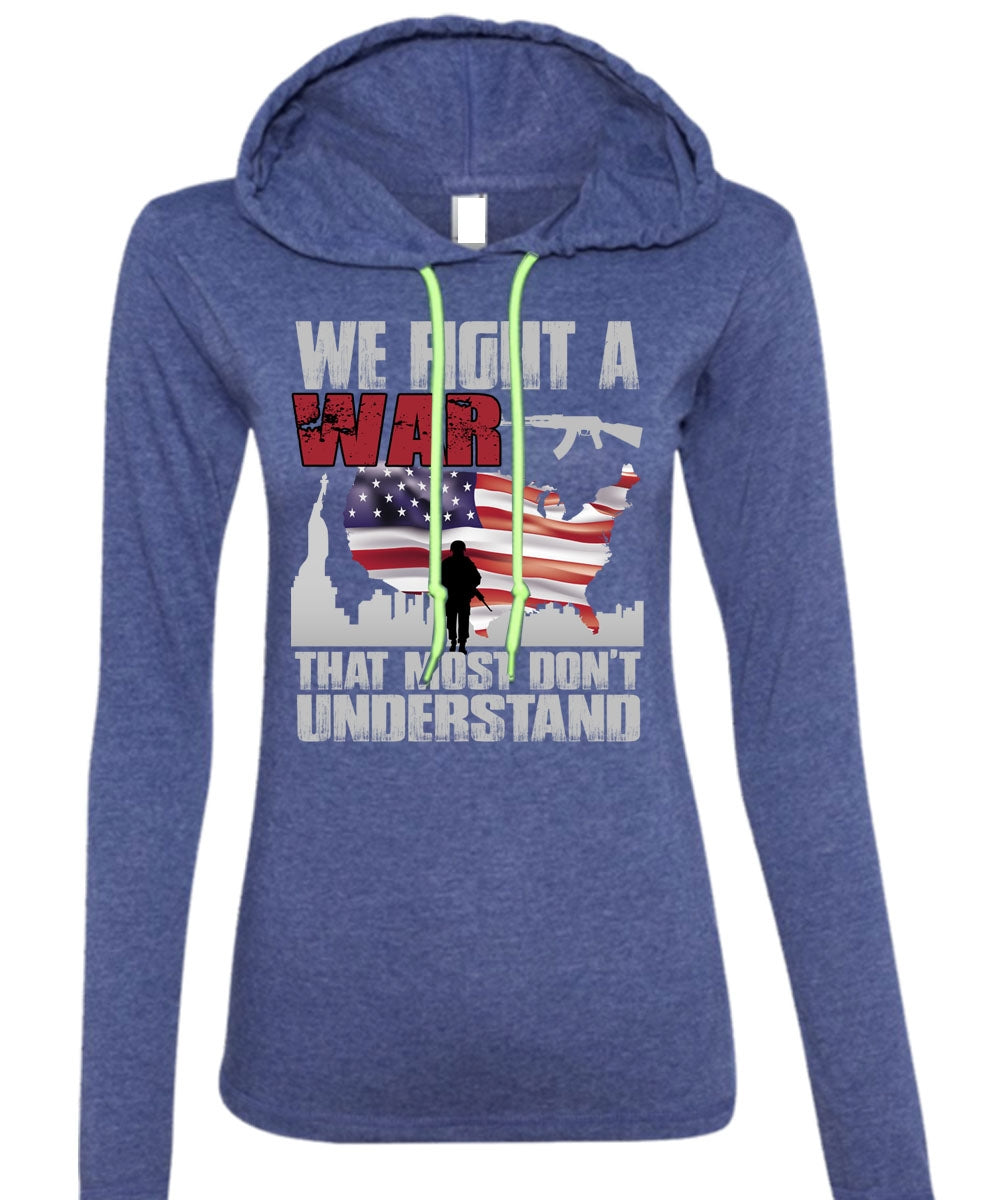 We Fight A War T Shirt, Being A Veteran T Shirt (Anvil Ladies Ringspun Hooded)