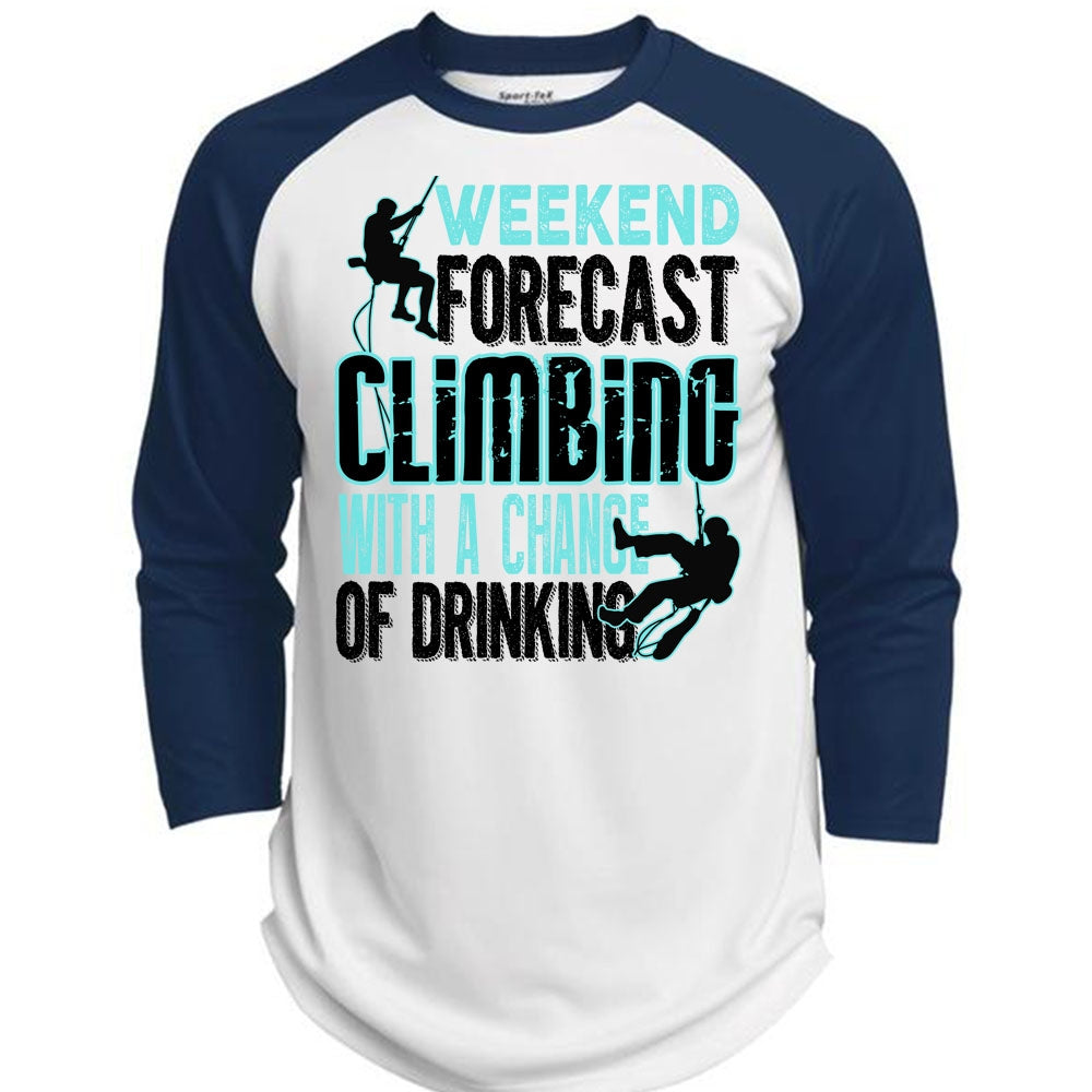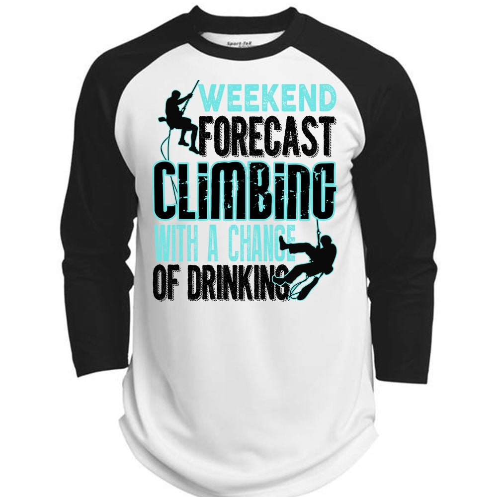 Weekend Forecast Climbing T Shirt, I Love Mountain T Shirt, Awesome T-Shirts (Polyester Game Baseball Jersey)