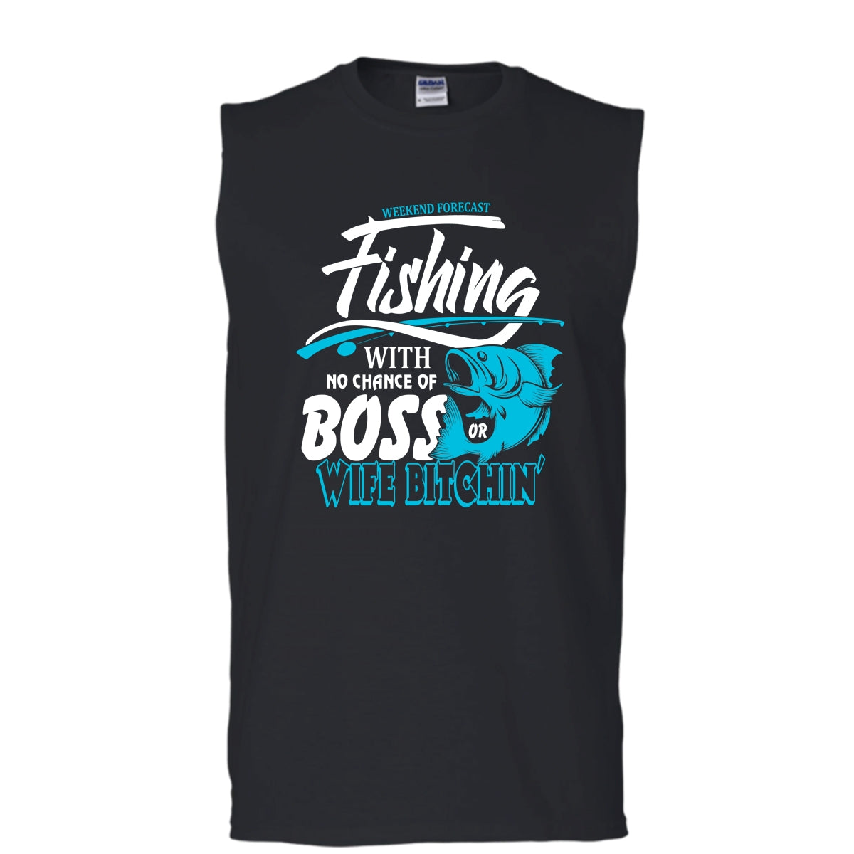 Weekend Forecast Fishing T Shirt, No Chance Of Boss T Shirt, Cool T Shirt (Men's Cotton Sleeveless)
