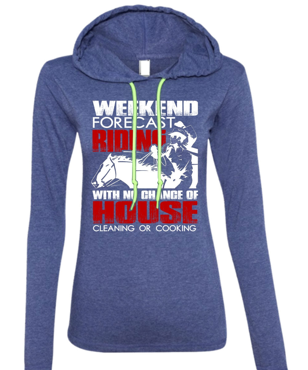 Weekend Forecast Riding T Shirt, House Cleaning T Shirt (Anvil Ladies Ringspun Hooded)