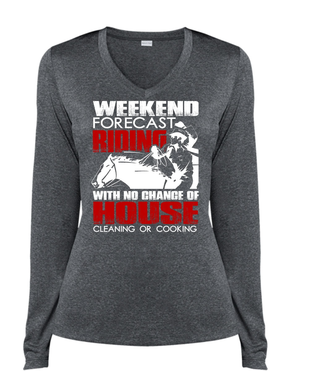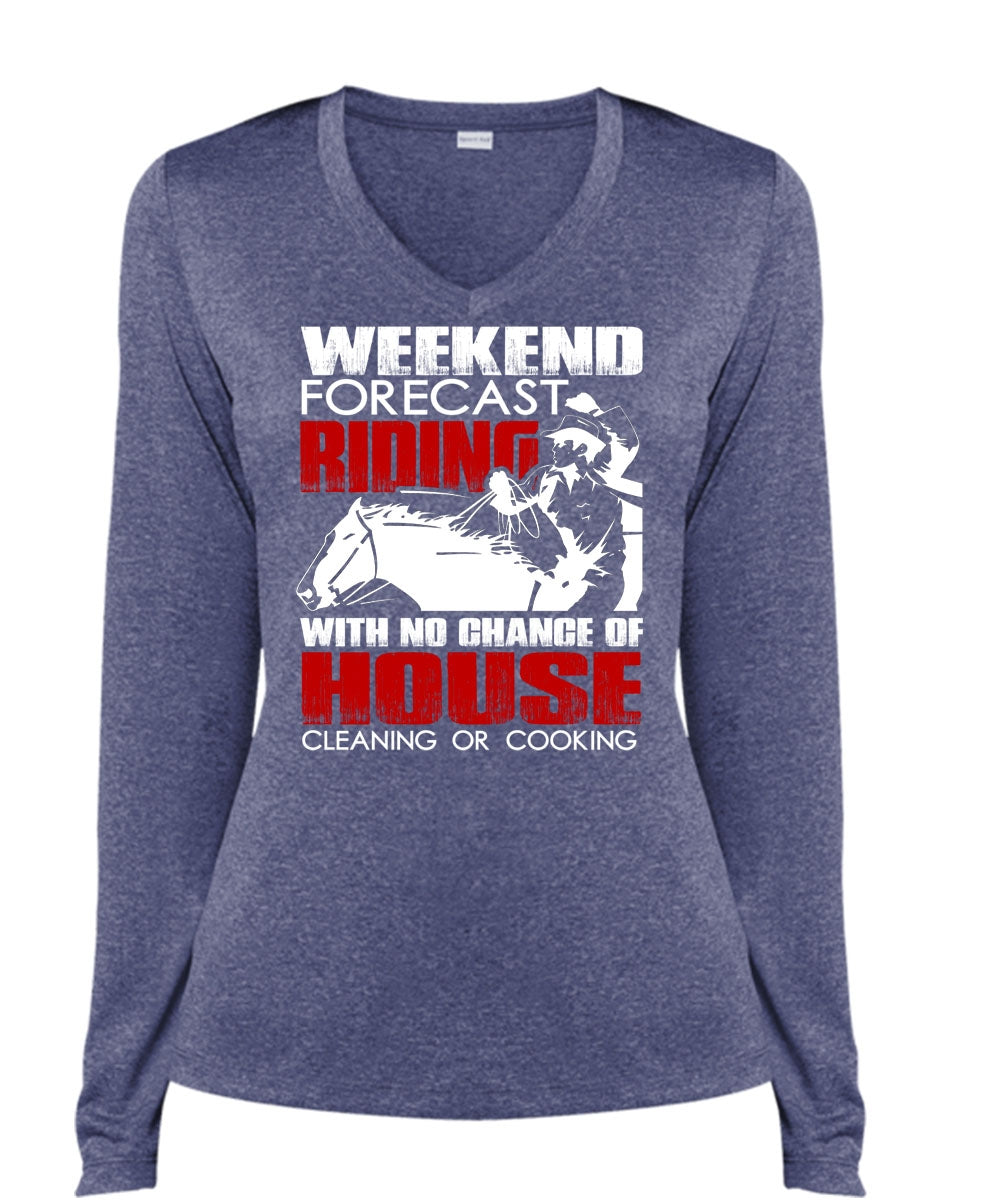 Weekend Forecast Riding T Shirt, House Cleaning T Shirt, Cool Shirt (Ladies LS Heather V-Neck)