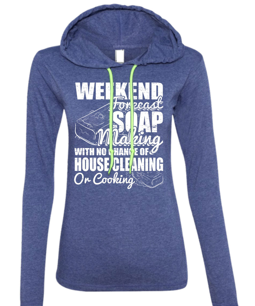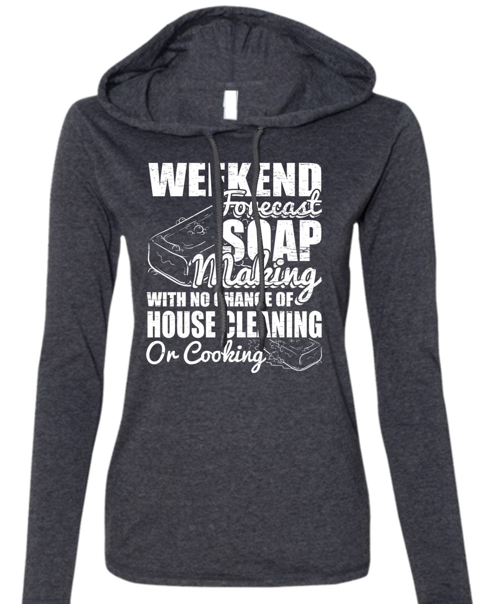 Weekend Forecast Soap Making T Shirt, House Cleaning T Shirt (Anvil Ladies Ringspun Hooded)