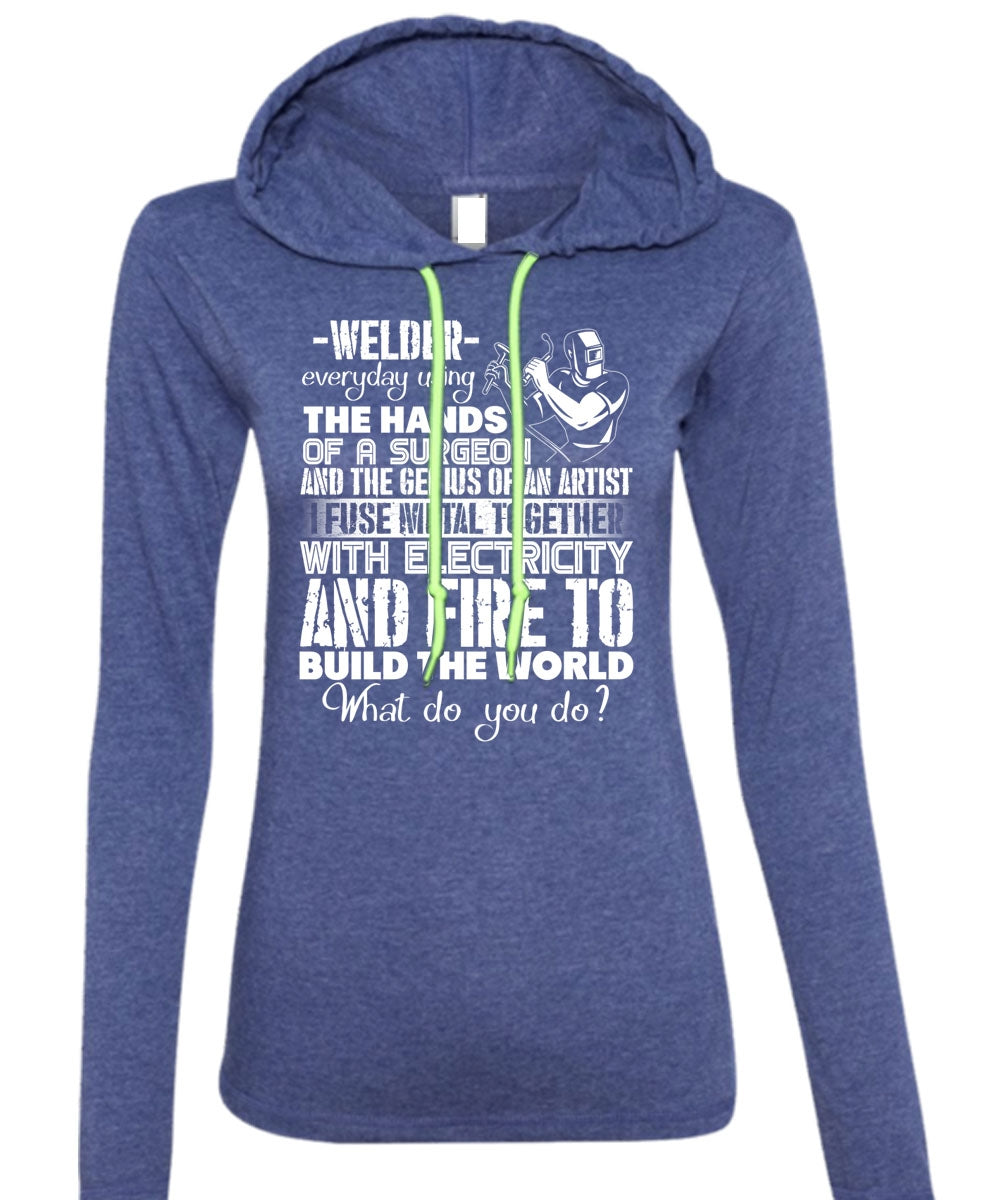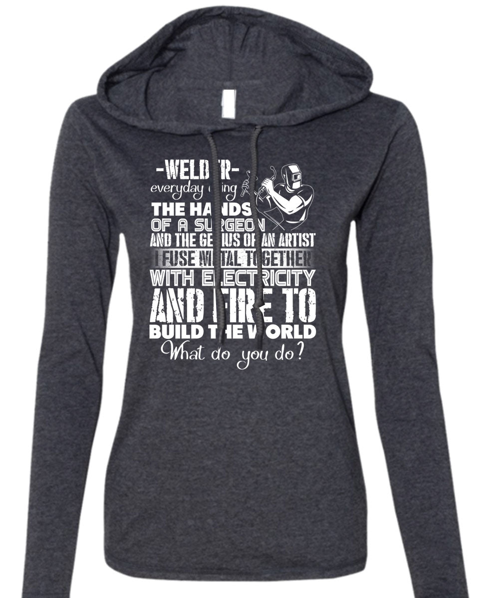 Welder Everyday Using The Hands T Shirt, Build The World T Shirt (Anvil Ladies Ringspun Hooded)