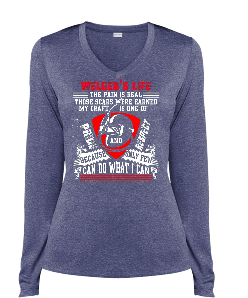 Welder's Life The Pain Is Real T Shirt, Being A Welder T Shirt, Cool Shirt (Ladies LS Heather V-Neck)