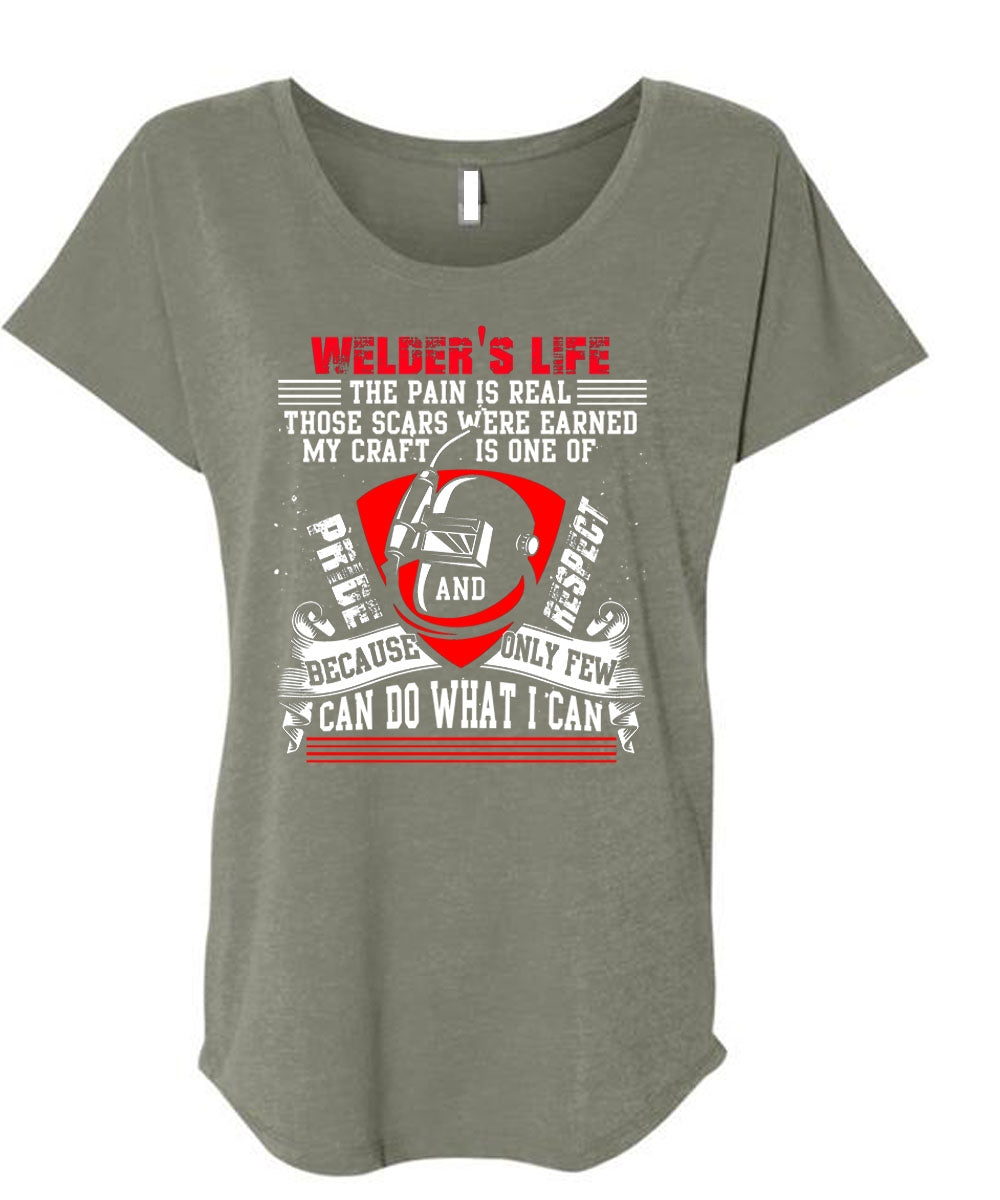 Welder's Life The Pain Is Real T Shirt, Being A Welder T Shirt, Cool Shirt (Ladies' Triblend Dolman Sleeve)