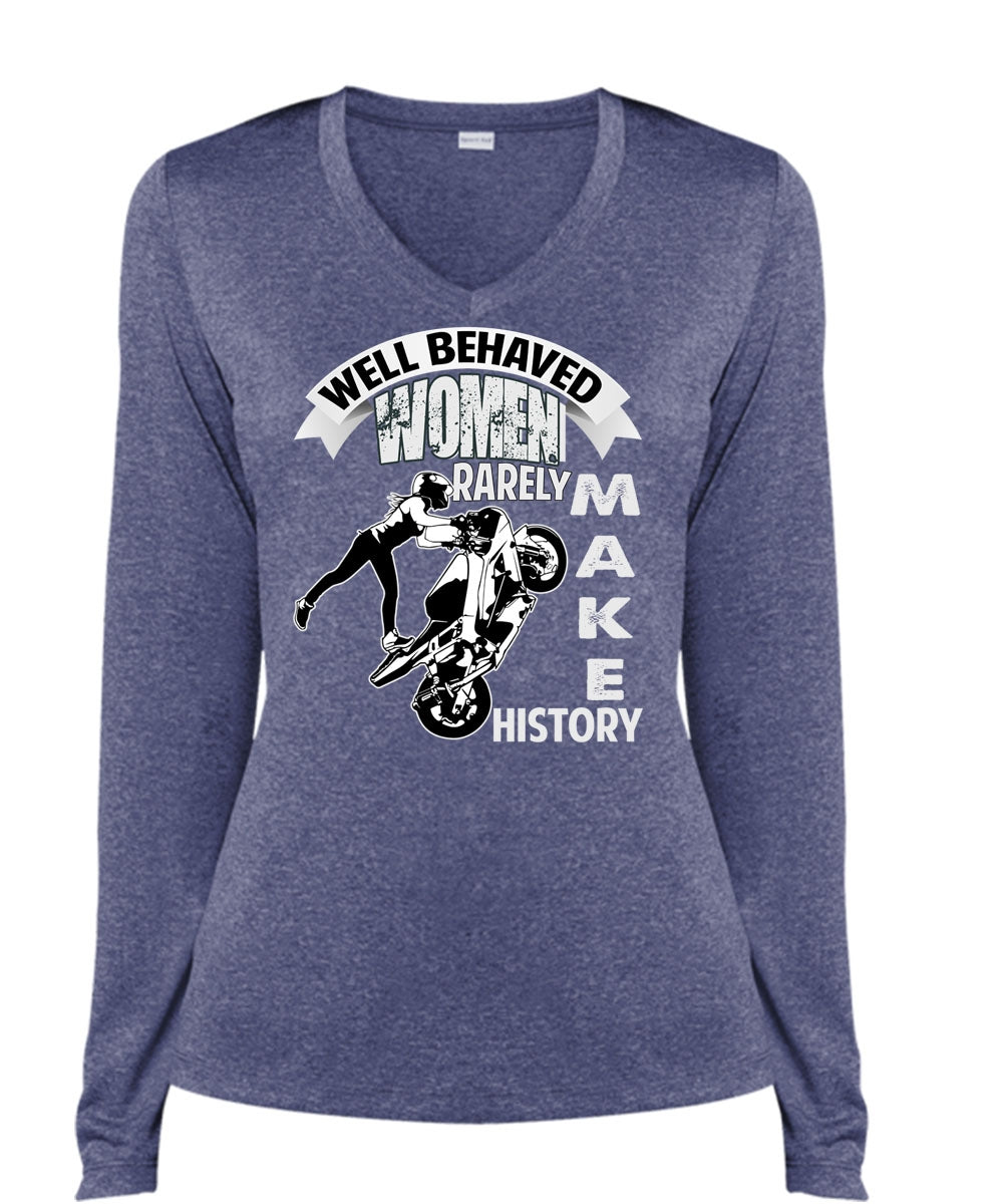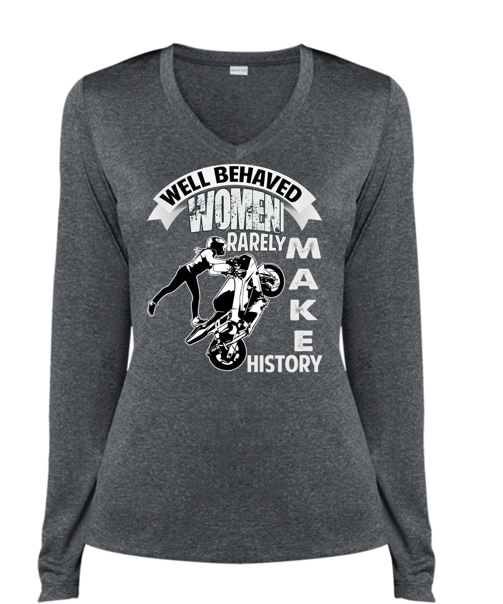 Well Behaved Women T Shirt, Rarely Make History T Shirt, Cool Shirt (Ladies LS Heather V-Neck)