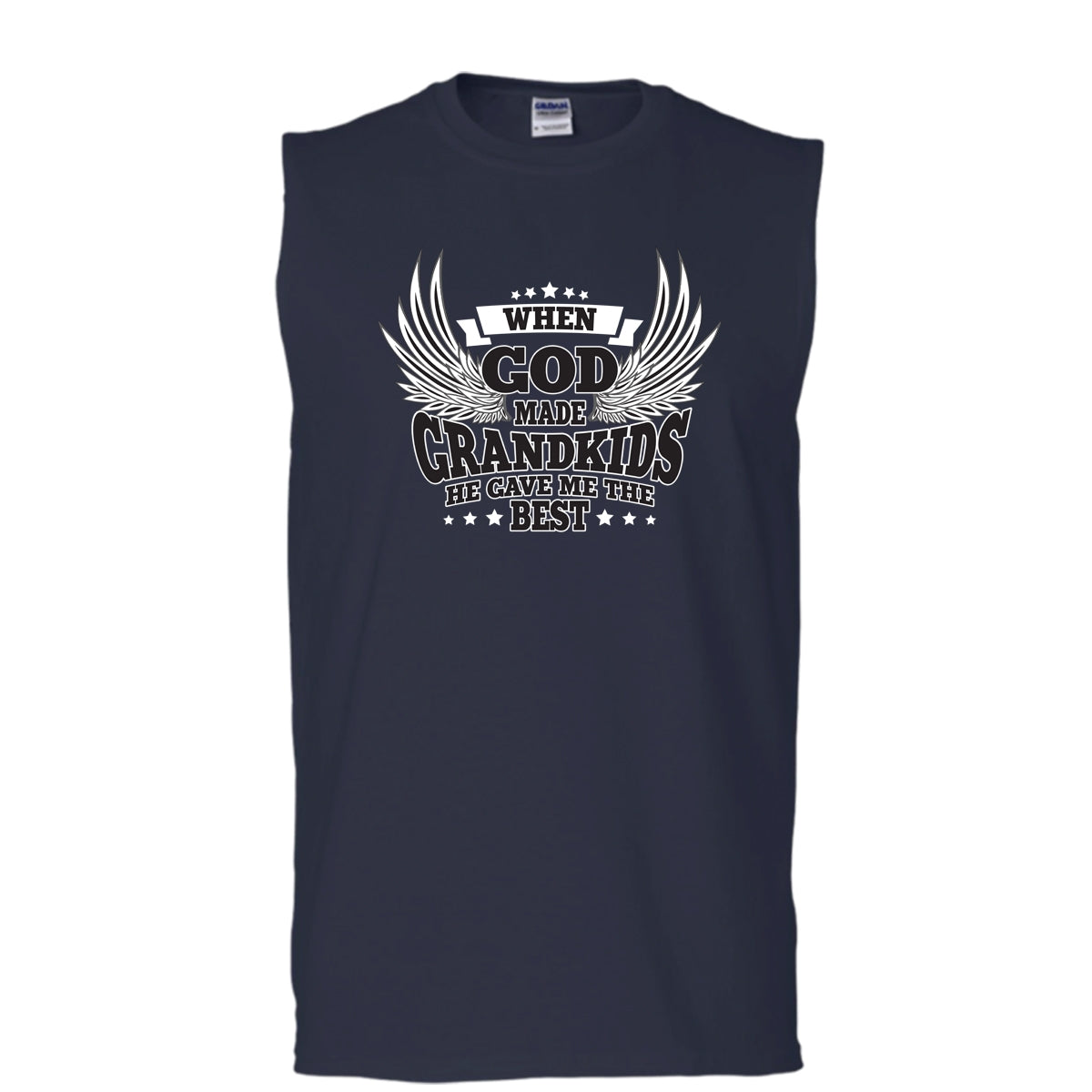When God Made Grandkids T Shirt, He Gave Me The Best T Shirt, Cool T Shirt (Men's Cotton Sleeveless)