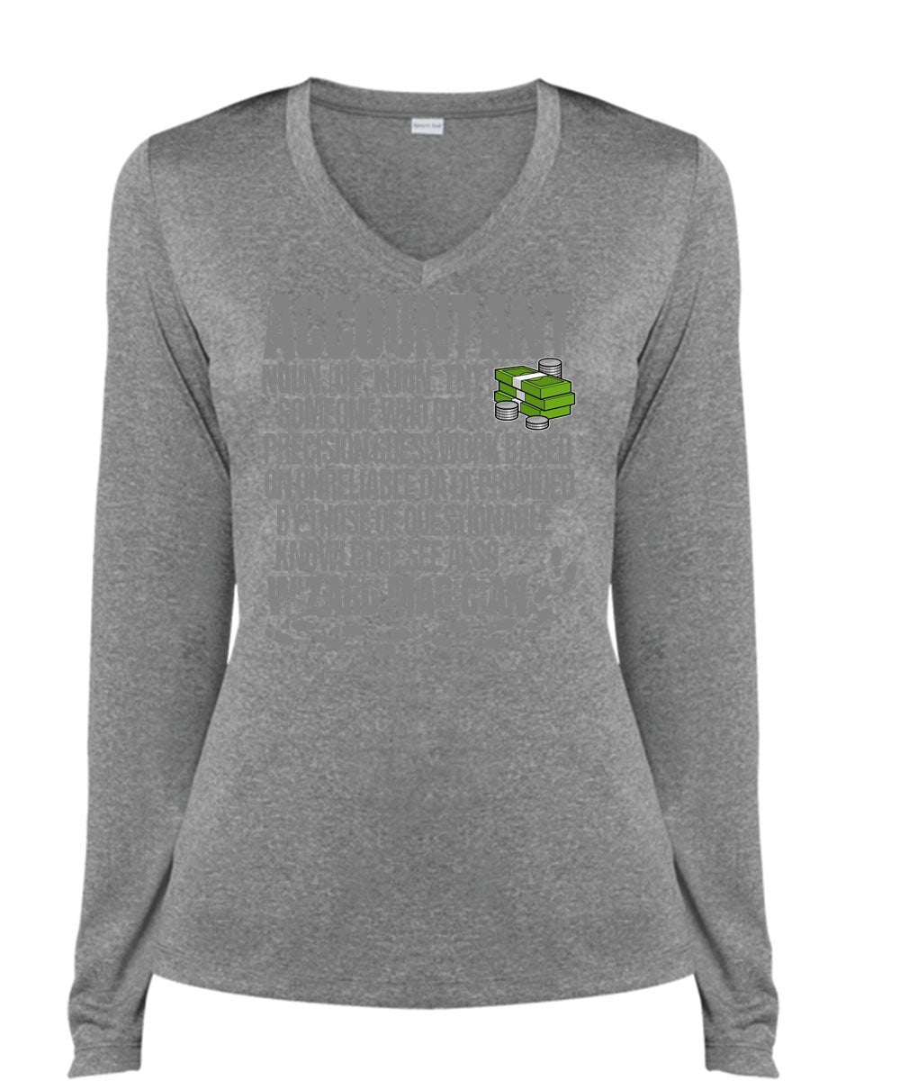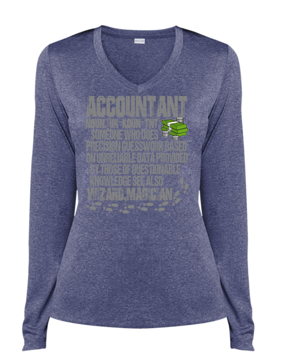 Who Does Precision Guesswork T Shirt, Being An Accountant T Shirt, Cool Shirt (Ladies LS Heather V-Neck)