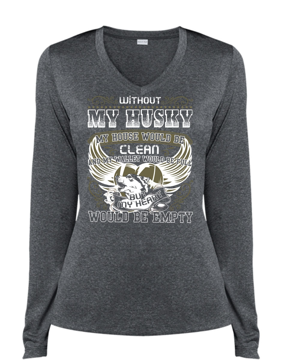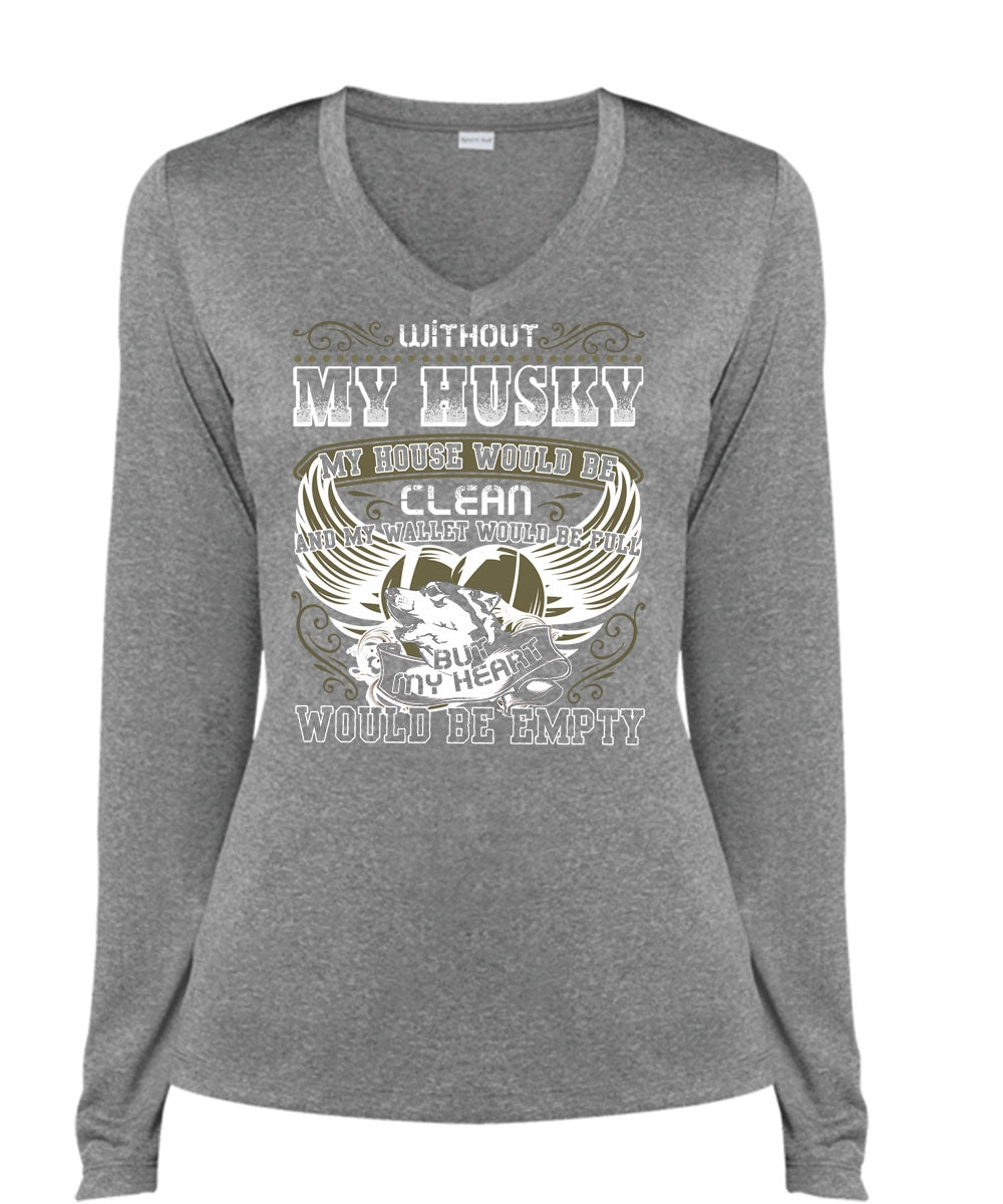 Without My Husky T Shirt, My Heart Would Be Empty T Shirt, Cool Shirt (Ladies LS Heather V-Neck)