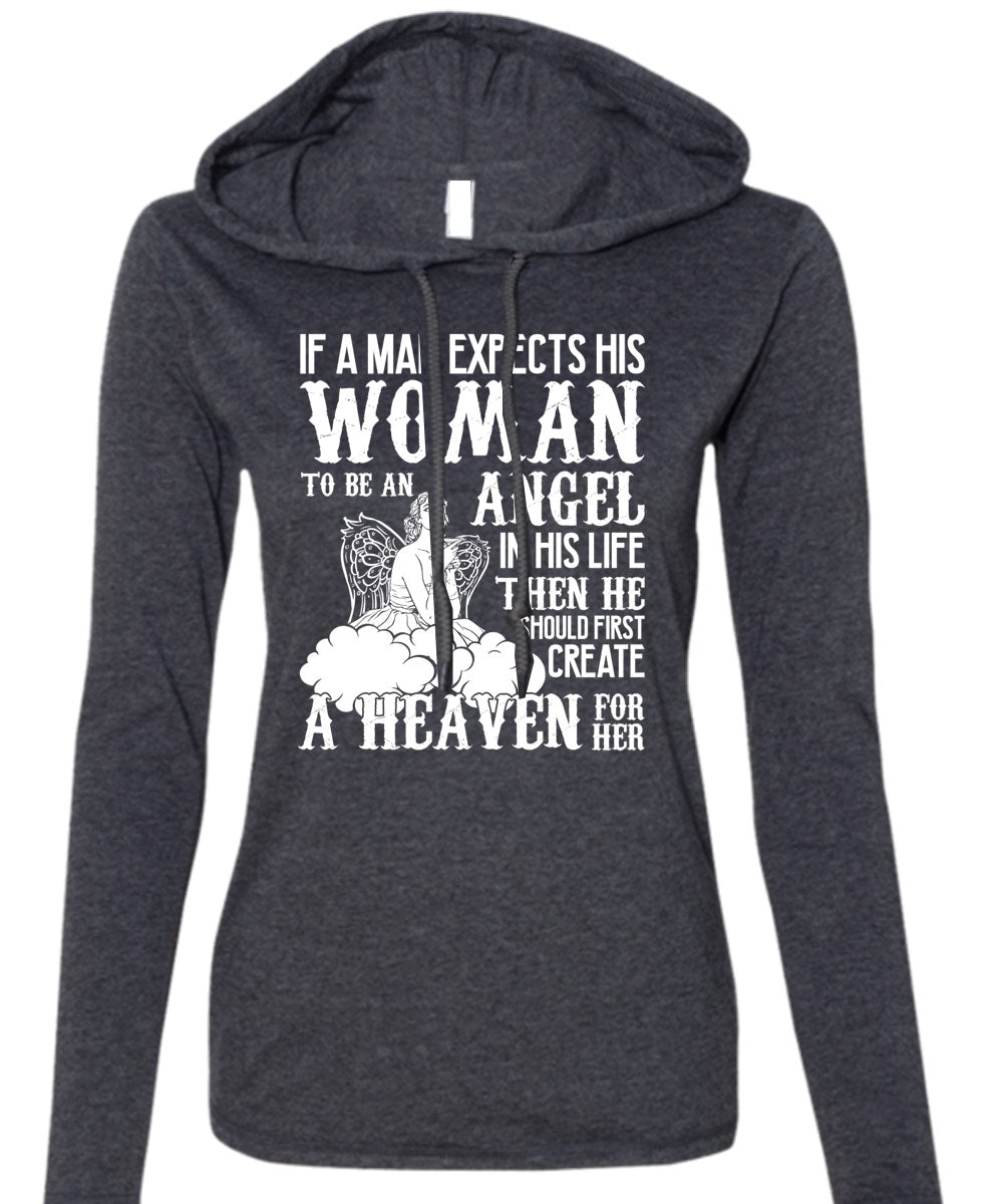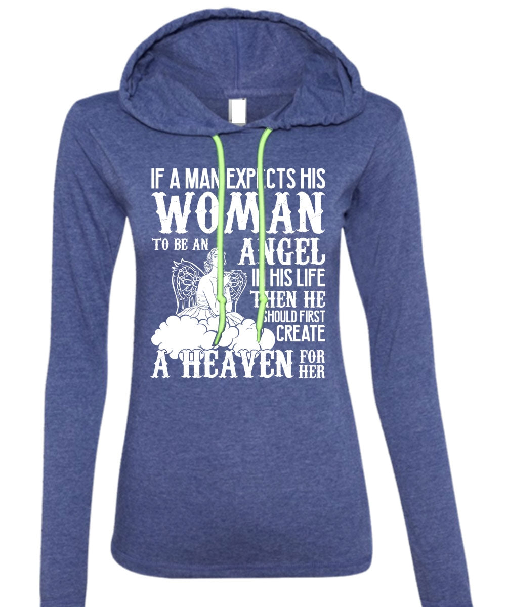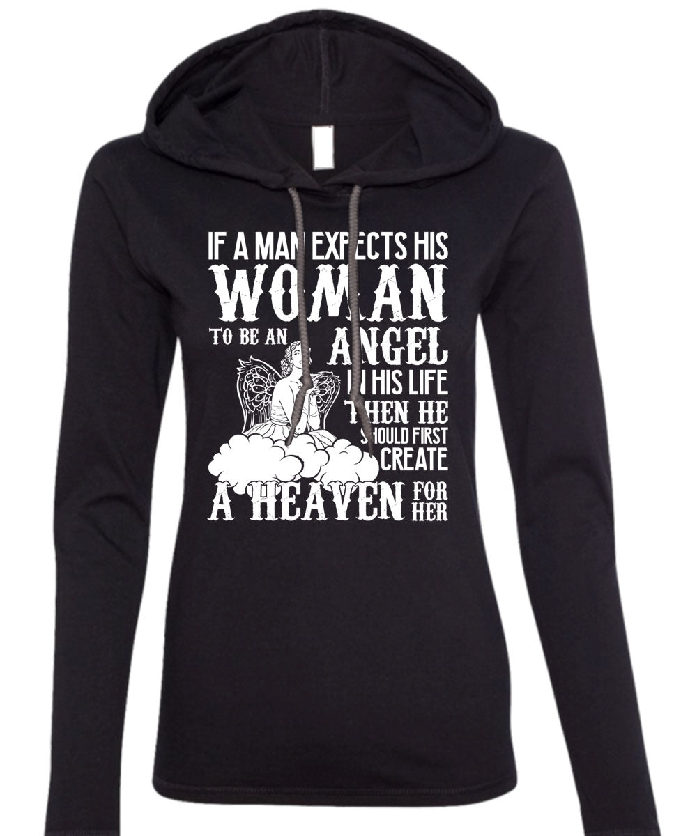 Woman To Be An Angel T Shirt, Create A Heaven T Shirt (Anvil Ladies Ringspun Hooded)