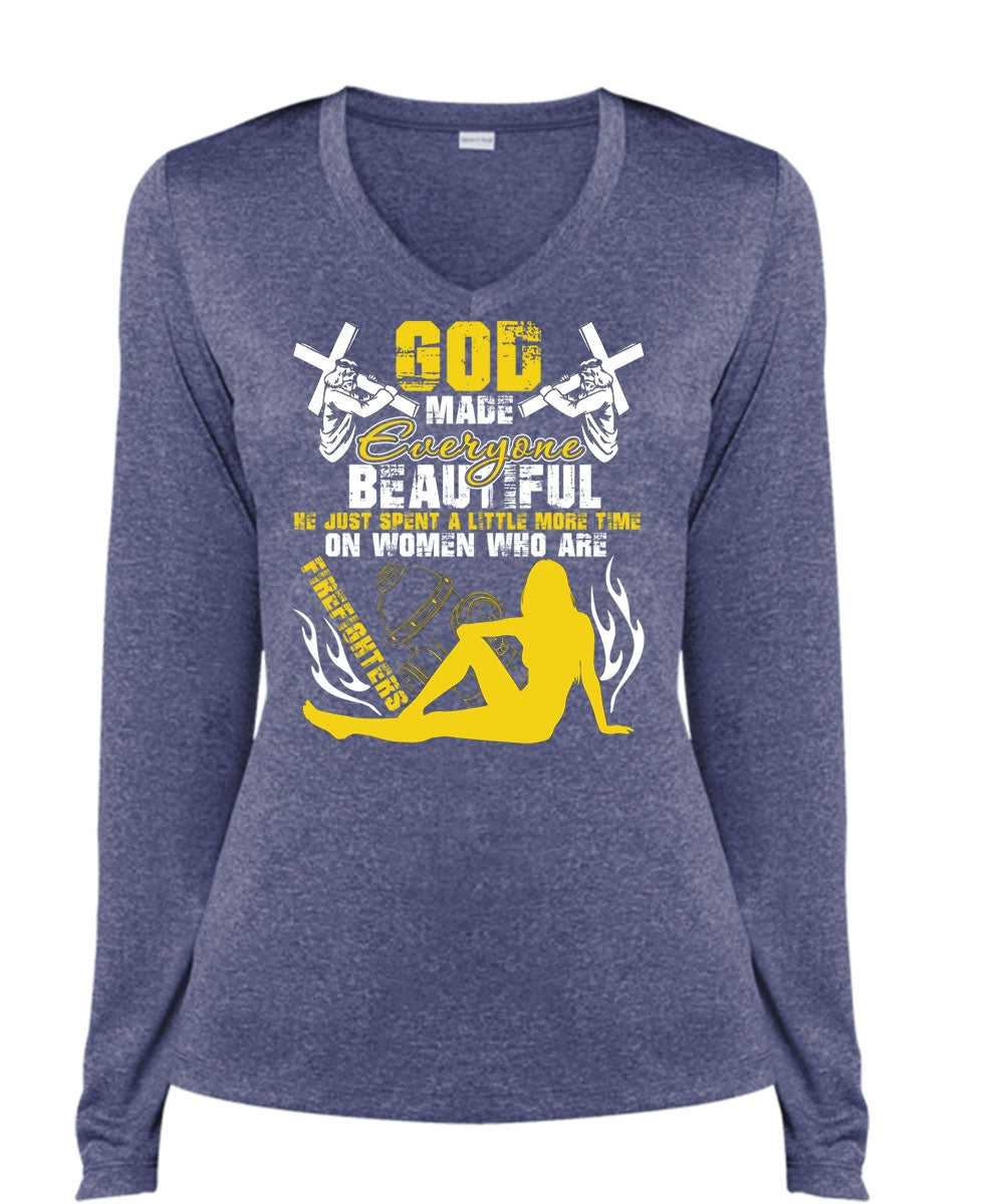 Women Who Are Firefighters T Shirt, Being A Firefighter T Shirt, Cool Shirt (Ladies LS Heather V-Neck)