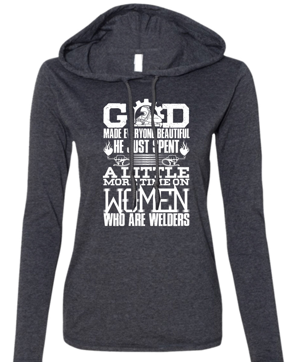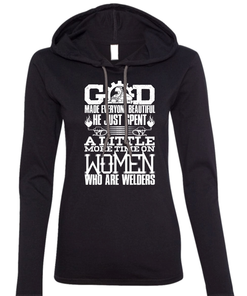 Women Who Are Welders T Shirt, God Made Everyone Beautiful T Shirt (Anvil Ladies Ringspun Hooded)
