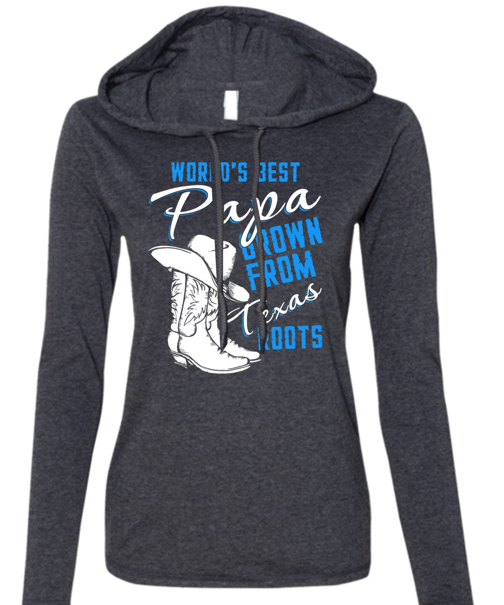 World's Best Papa T Shirt, Grown From Texas Roots T Shirt (Anvil Ladies Ringspun Hooded)