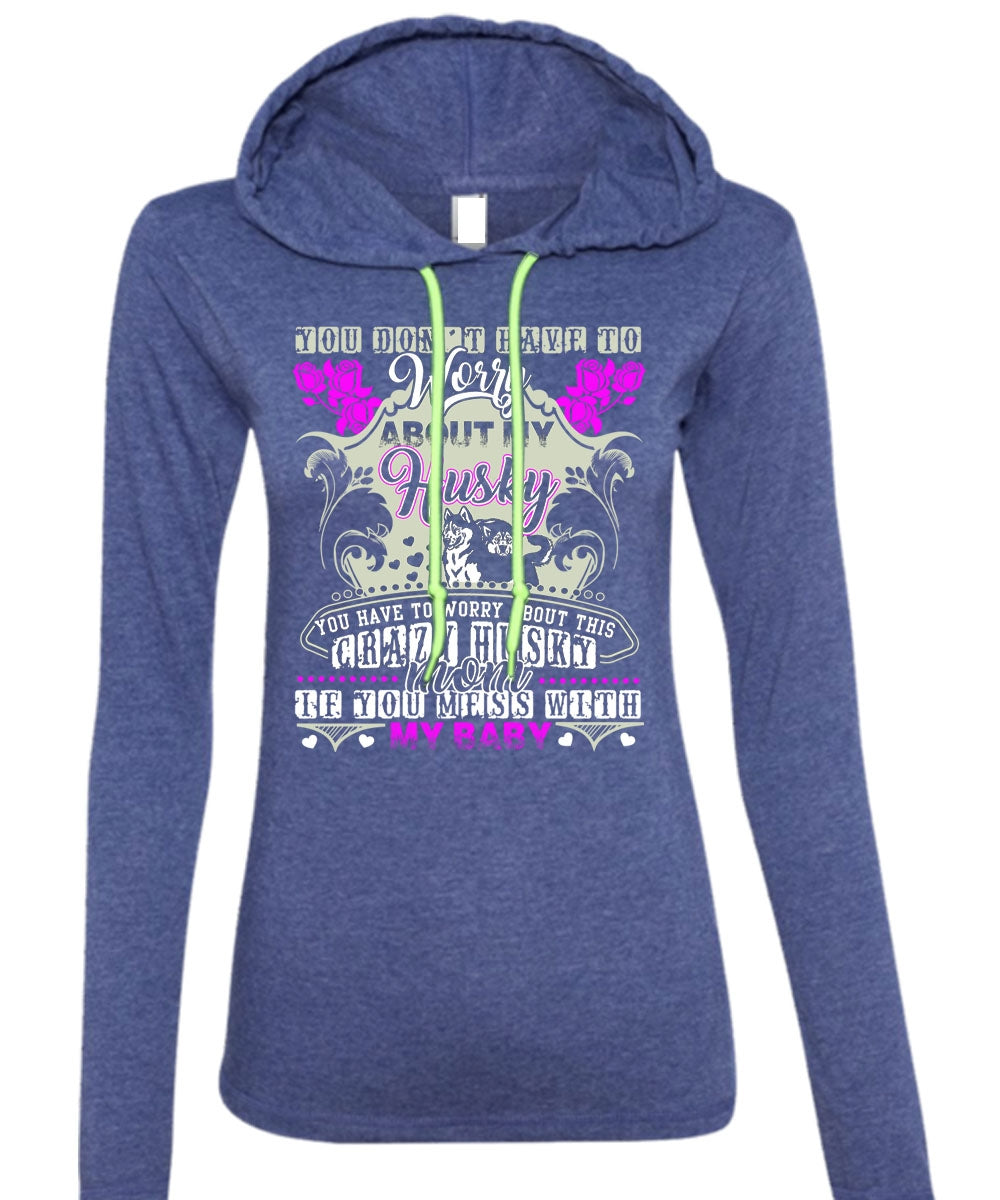 Worry About My Husky T Shirt, Crazy Husky Mom T Shirt (Anvil Ladies Ringspun Hooded)