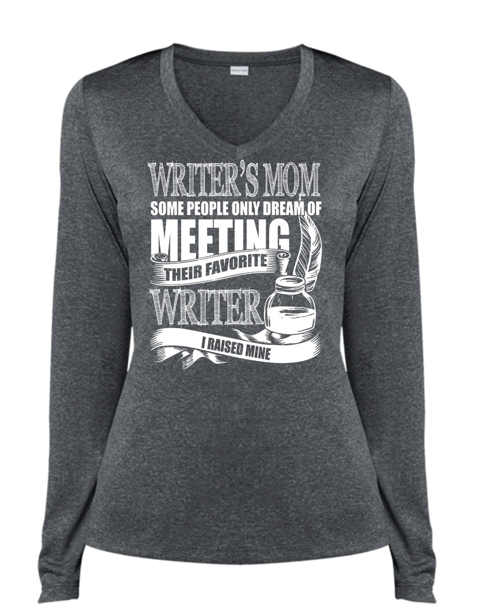 Writer's Mom T Shirt, Favorite Writer T Shirt, Cool Shirt (Ladies LS Heather V-Neck)