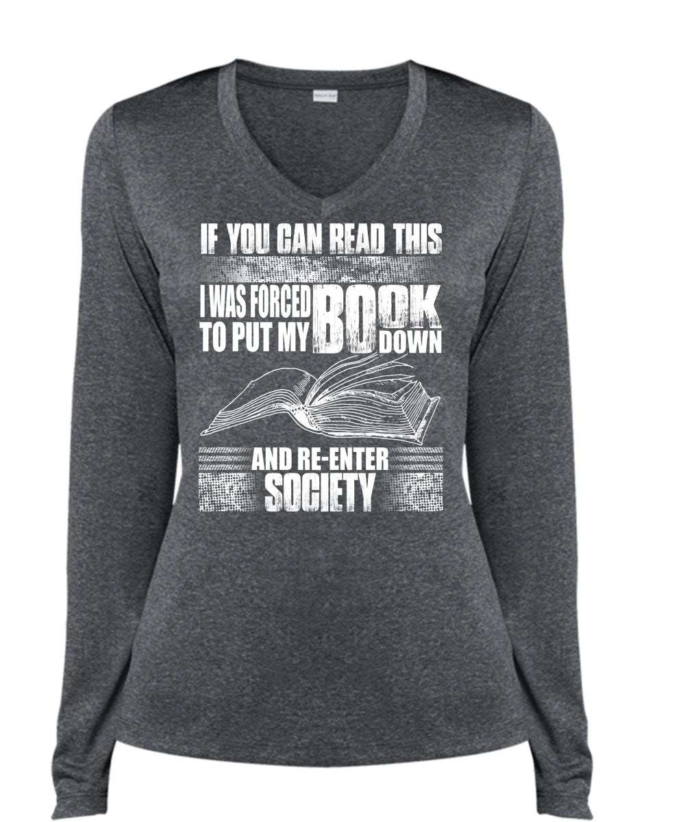 Yo Can Read This T Shirt, I Love Book T Shirt, Cool Shirt (Ladies LS Heather V-Neck)