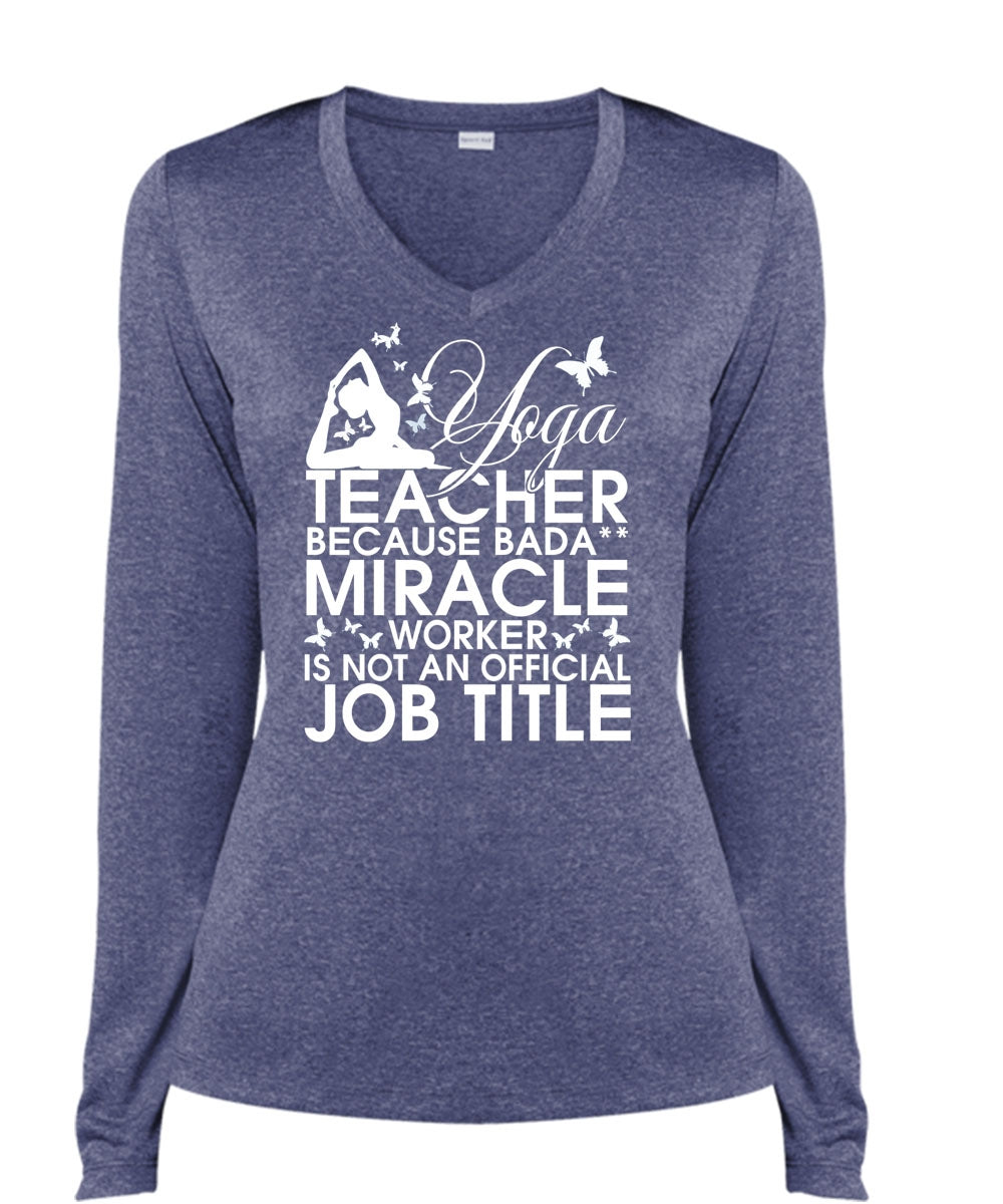 Yoga Teacher T Shirt, Miracle Worker T Shirt, Cool Shirt (Ladies LS Heather V-Neck)