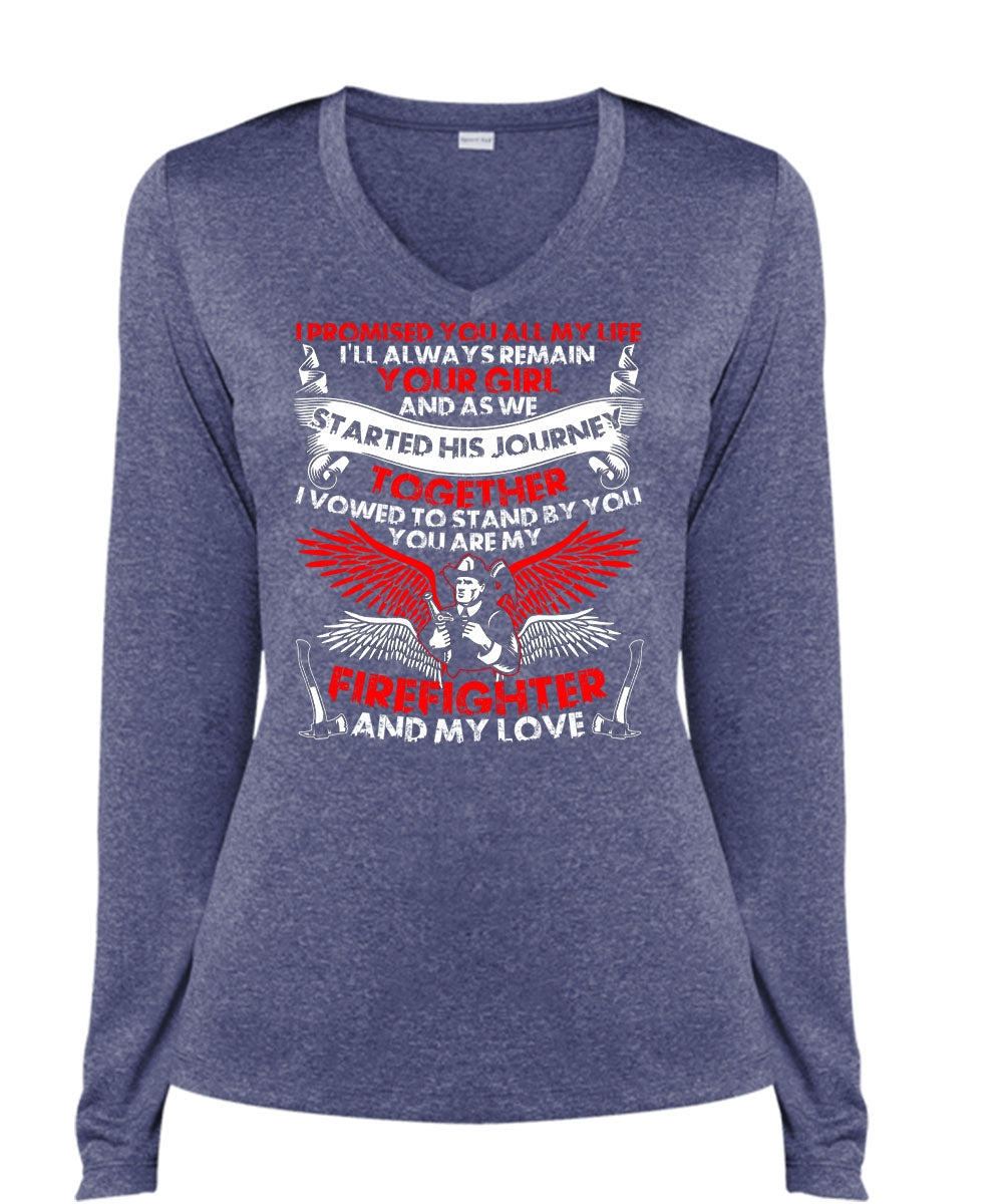 You Are My Firefighter T Shirt, I Love Firefighter T Shirt, Cool Shirt (Ladies LS Heather V-Neck)