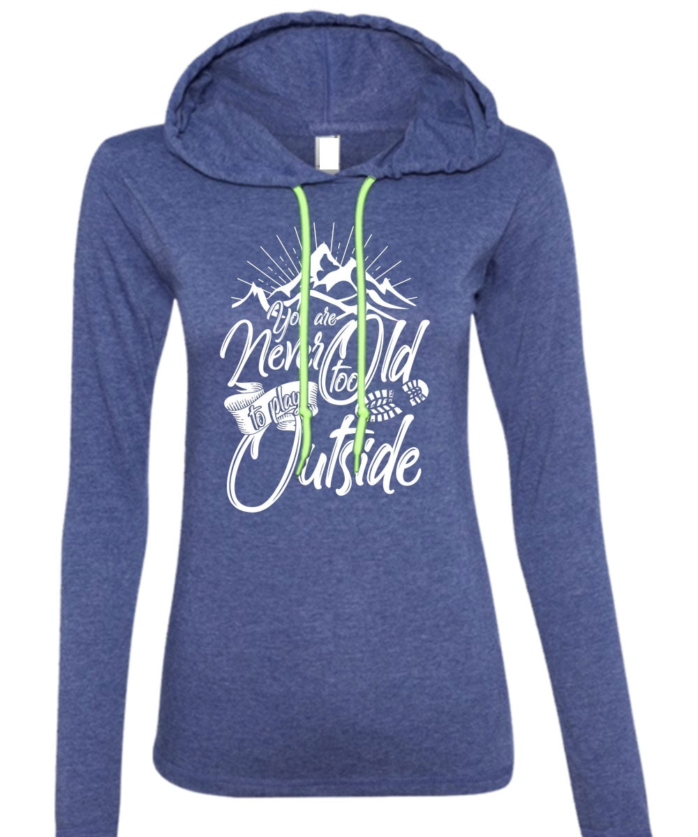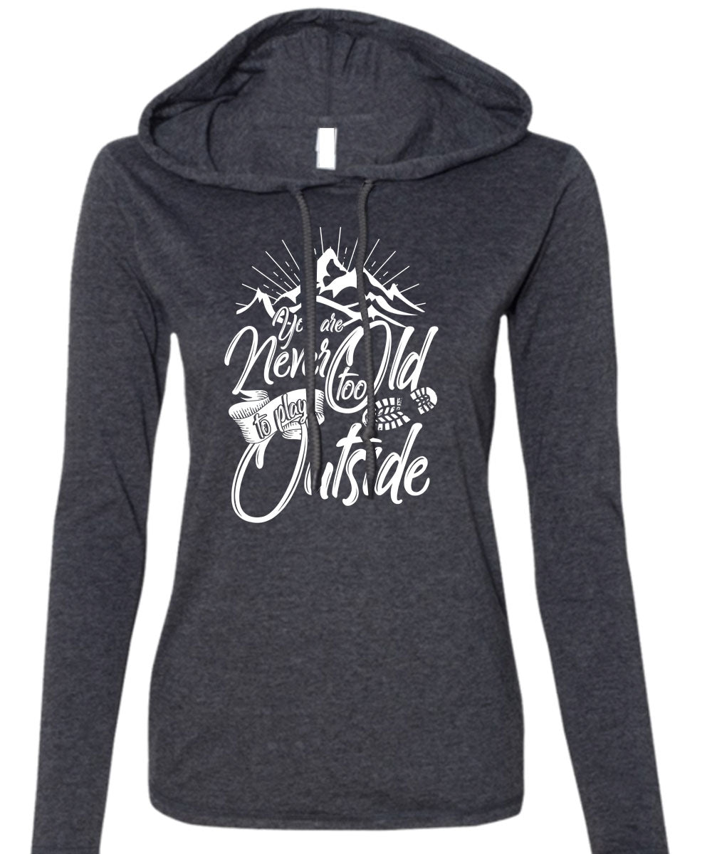 You Are Never Too Old To Play Outside T Shirt, Being A Hiker T Shirt (Anvil Ladies Ringspun Hooded)