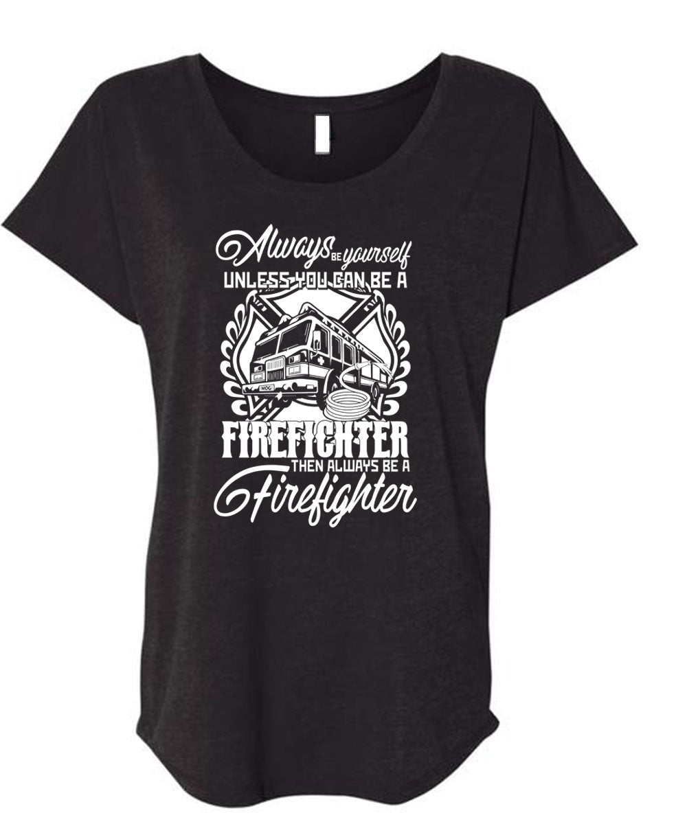 You Can Be A Firefighter T Shirt, Always Be A Firefighter T Shirt, Cool Shirt (Ladies' Triblend Dolman Sleeve)