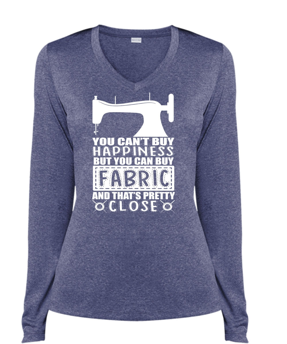 You Can Buy Fabric T Shirt, You Can't Buy Happiness T Shirt, Cool Shirt (Ladies LS Heather V-Neck)