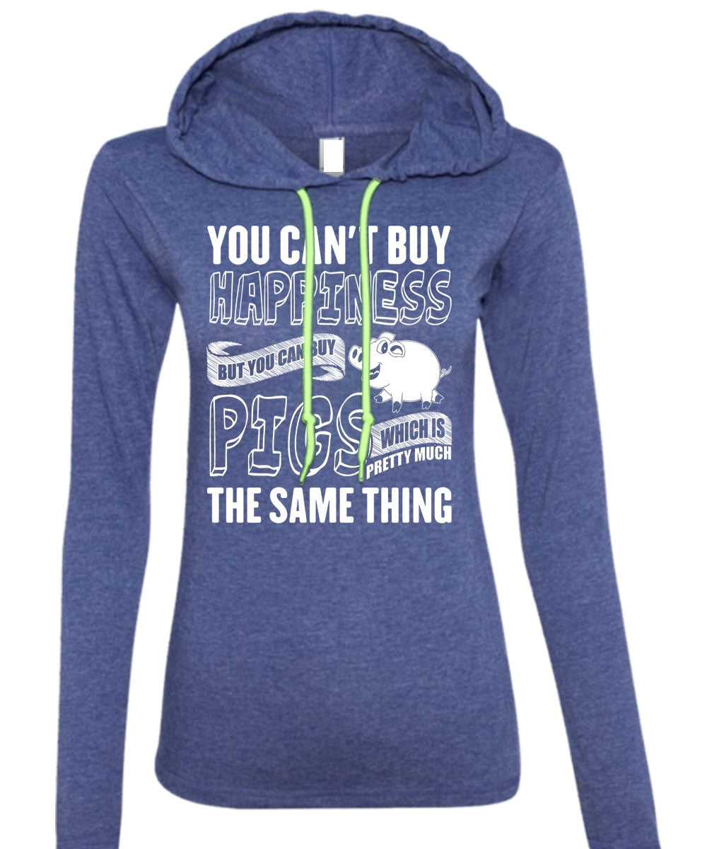 You Can Buy Pigs T Shirt, You Can't Buy Happiness T Shirt (Anvil Ladies Ringspun Hooded)
