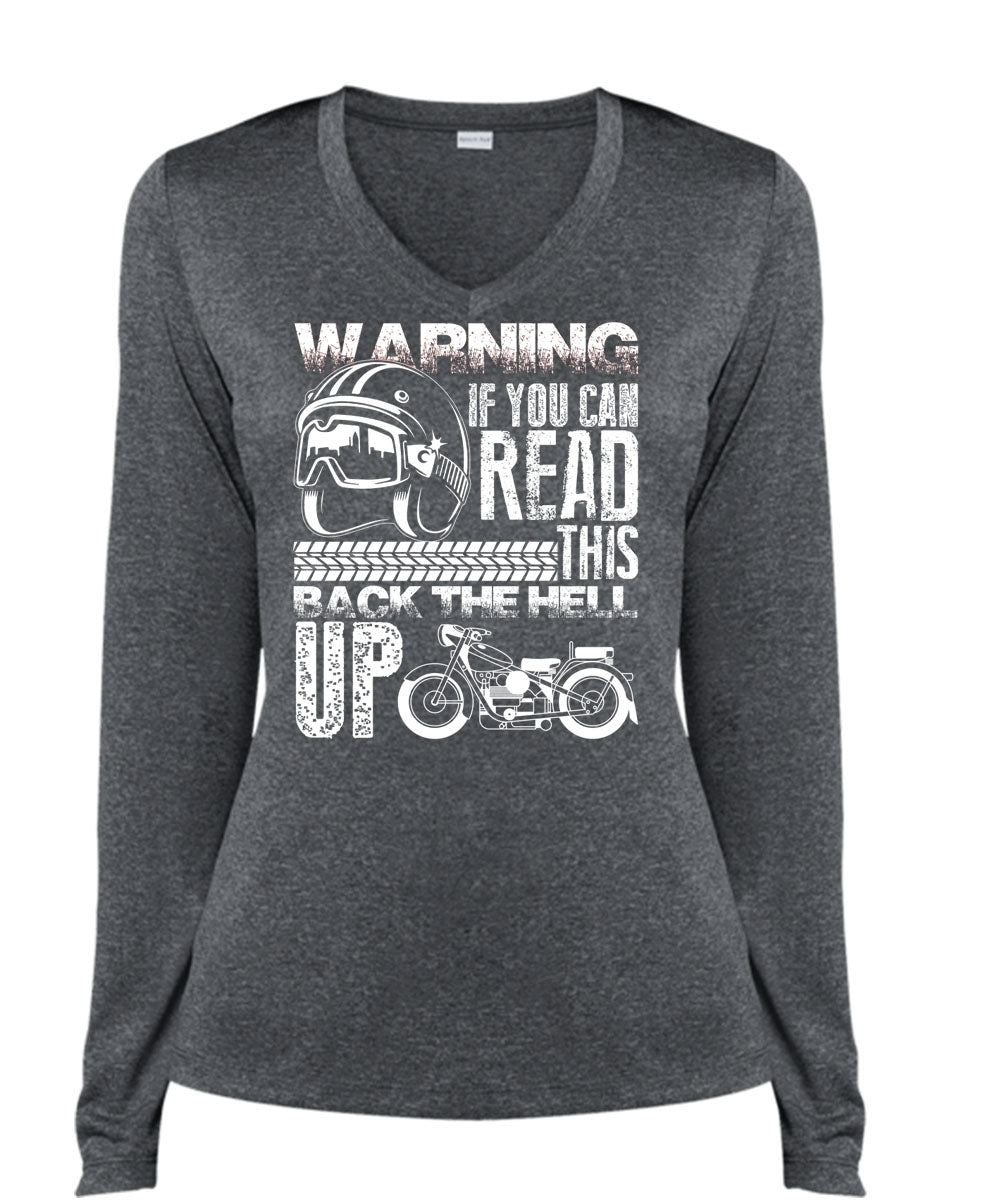 You Can Read T Shirt, This Back The Hell Up T Shirt, Cool Shirt (Ladies LS Heather V-Neck)