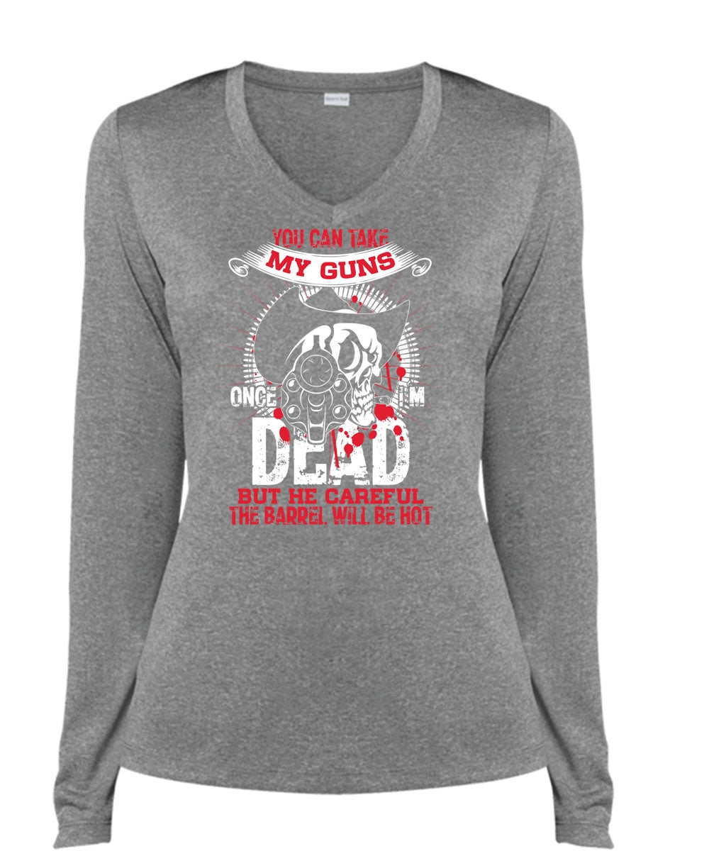 You Can Take My Guns T Shirt, Being A Gunner T Shirt, Cool Shirt (Ladies LS Heather V-Neck)