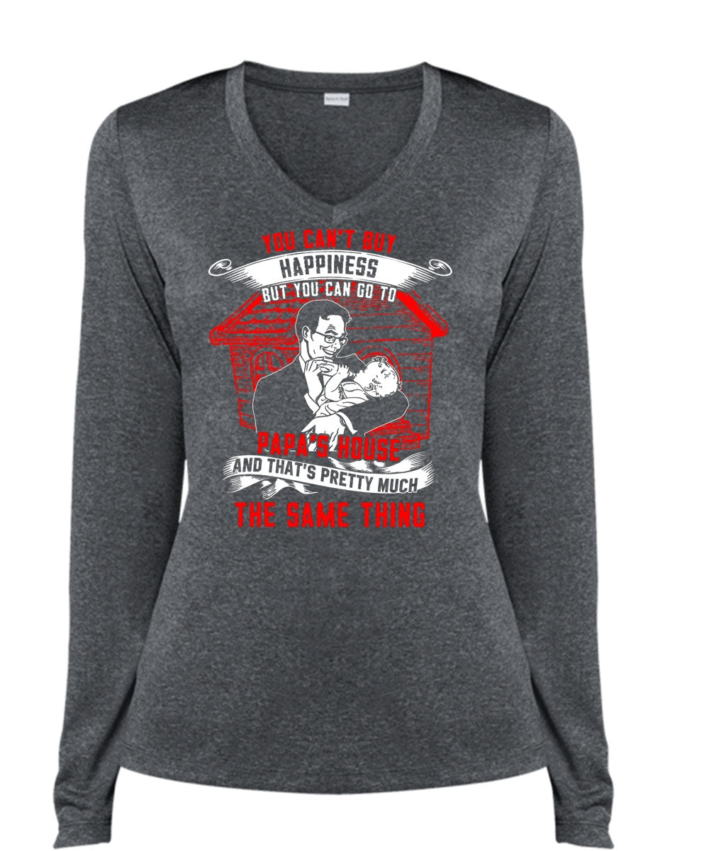 You Can't Buy Happiness T Shirt, I Love Papa T Shirt, Cool Shirt (Ladies LS Heather V-Neck)