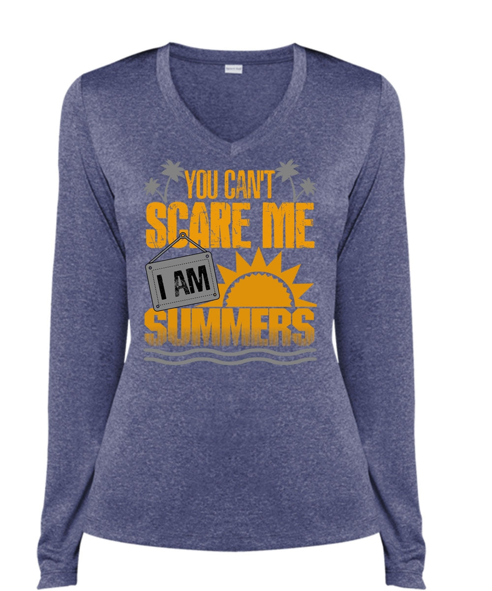 You Can't Scare Me T Shirt, I Am Summers T Shirt, Cool Shirt (Ladies LS Heather V-Neck)