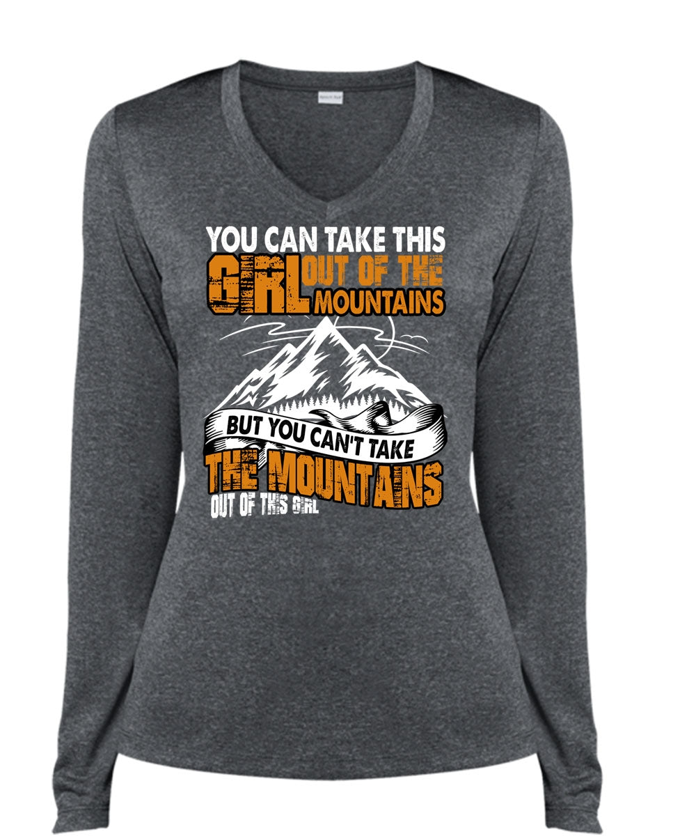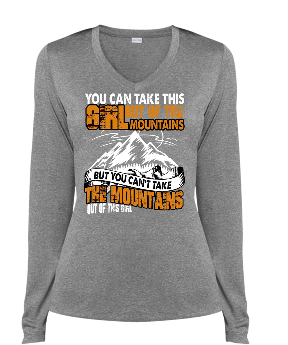 You Can't Take The Mountains T Shirt, Out Of This Girl T Shirt, Cool Shirt (Ladies LS Heather V-Neck)