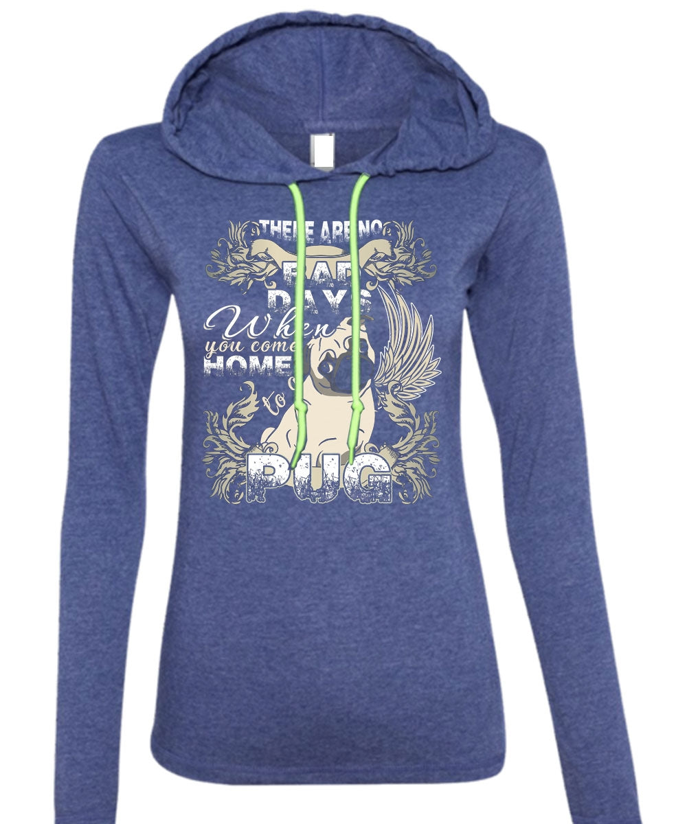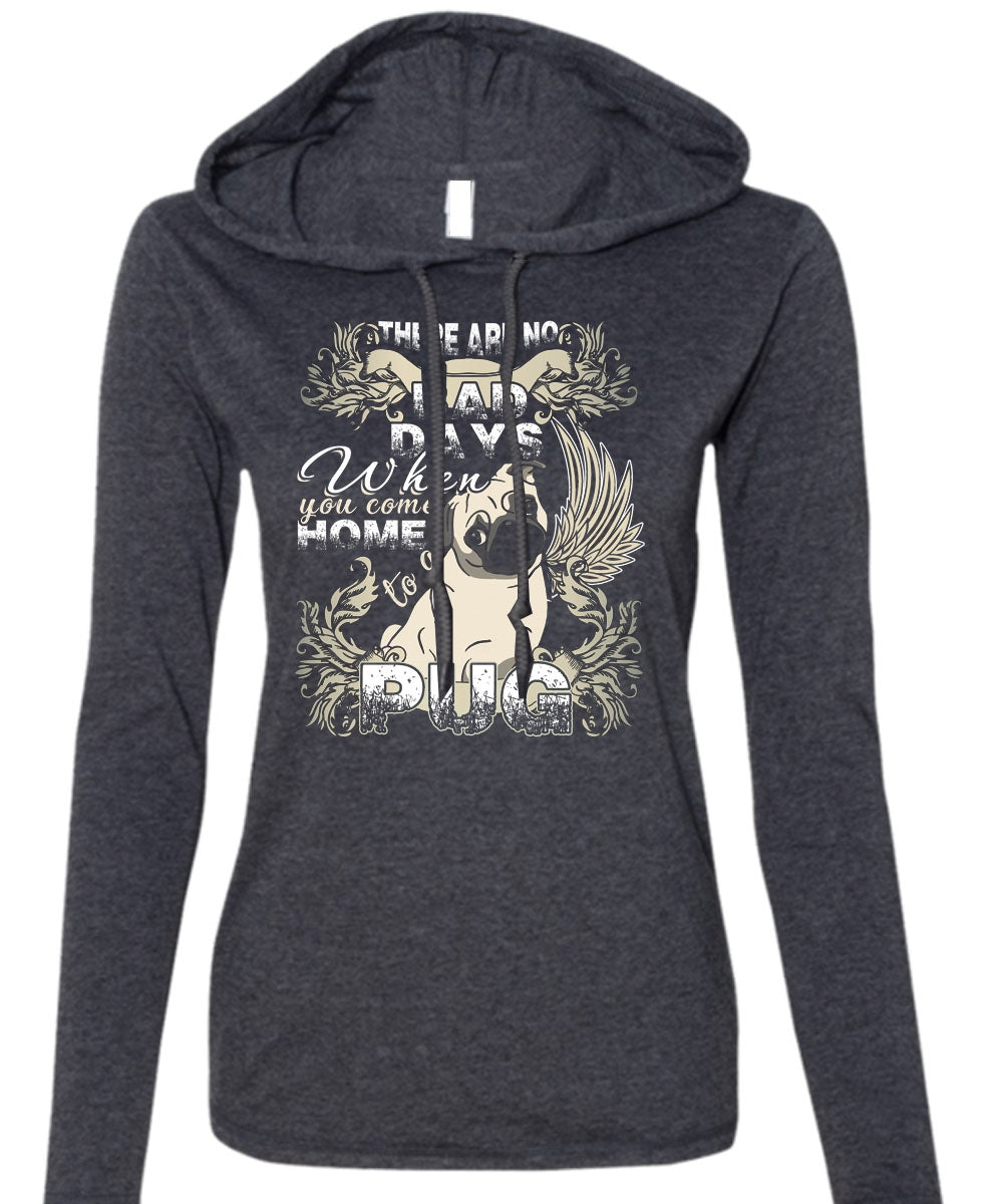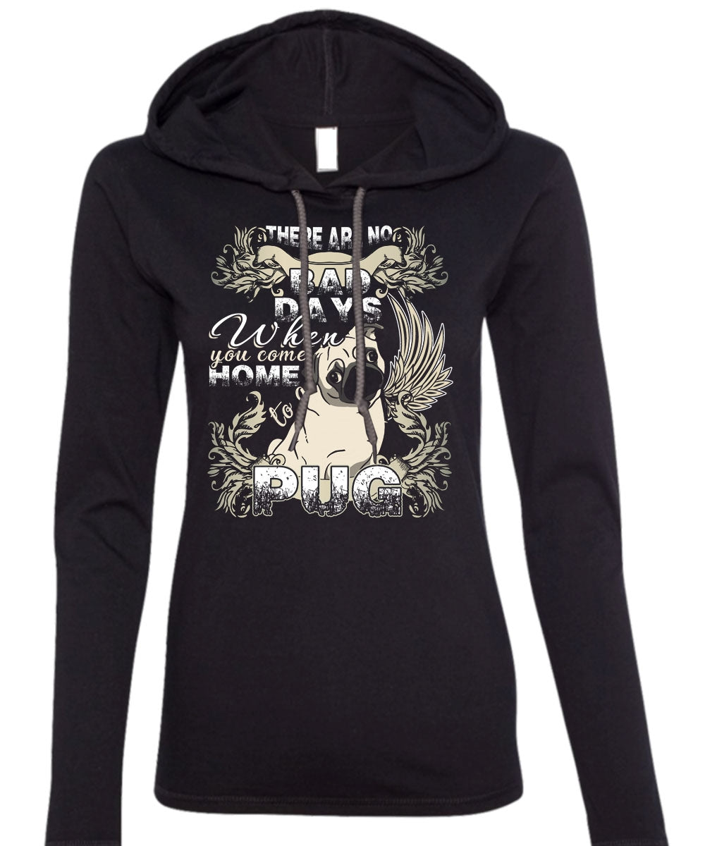 You Come Home To A Pug T Shirt, There Are No Bad Days T Shirt (Anvil Ladies Ringspun Hooded)