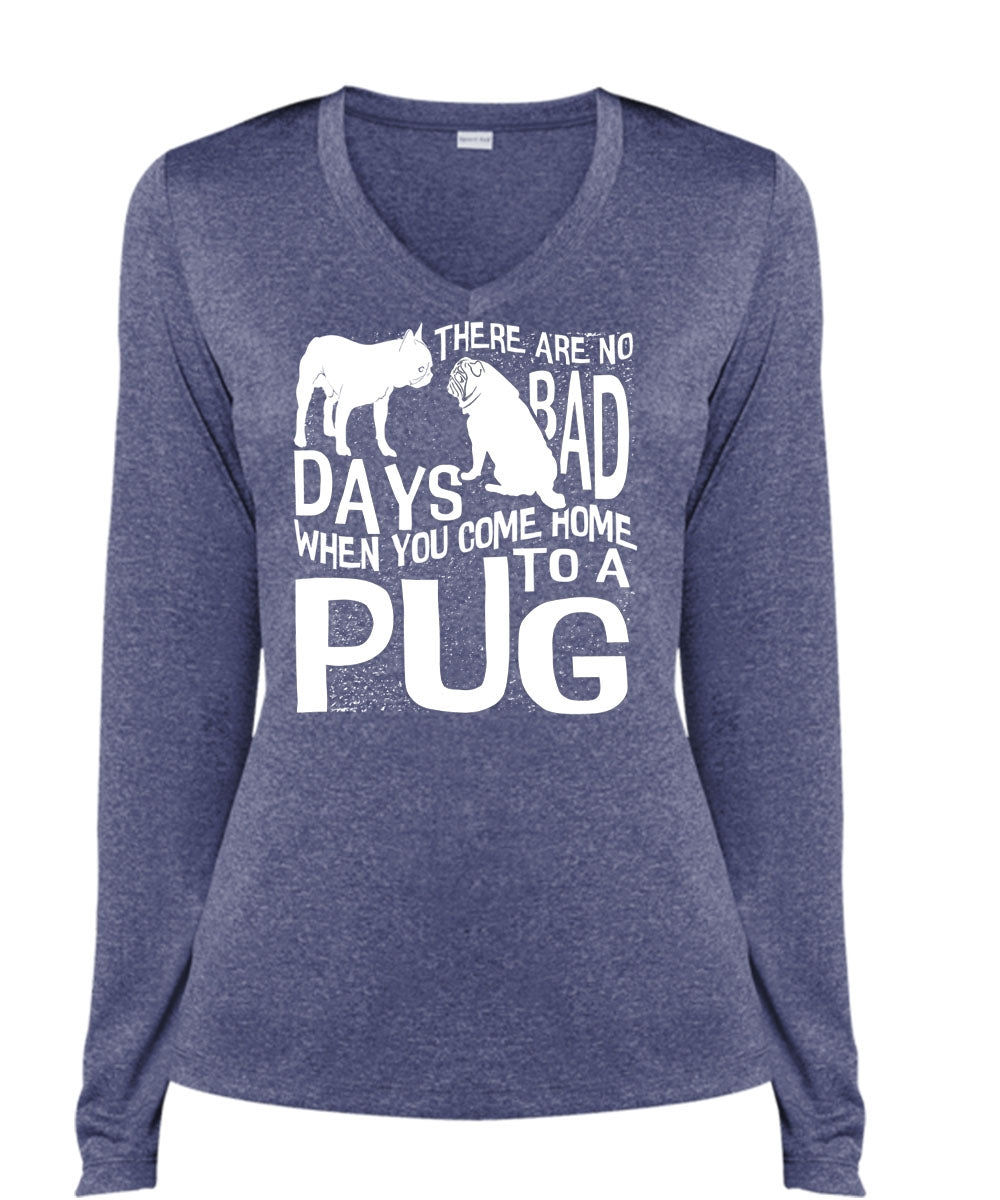 You Come Home To A Pug T Shirt, There Are No Bad Days T Shirt, Cool Shirt (Ladies LS Heather V-Neck)