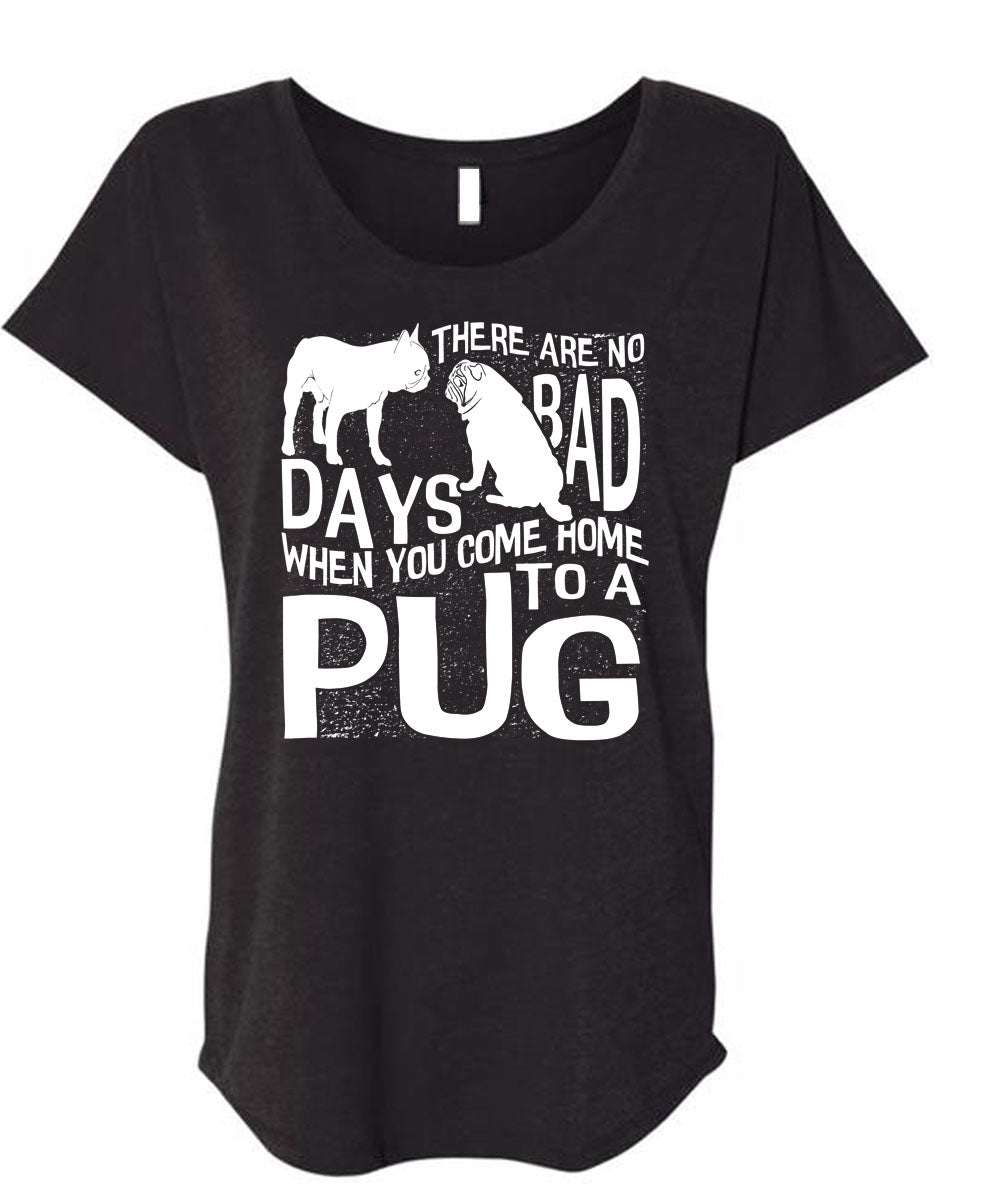 You Come Home To A Pug T Shirt, There Are No Bad Days T Shirt, Cool Shirt (Ladies' Triblend Dolman Sleeve)