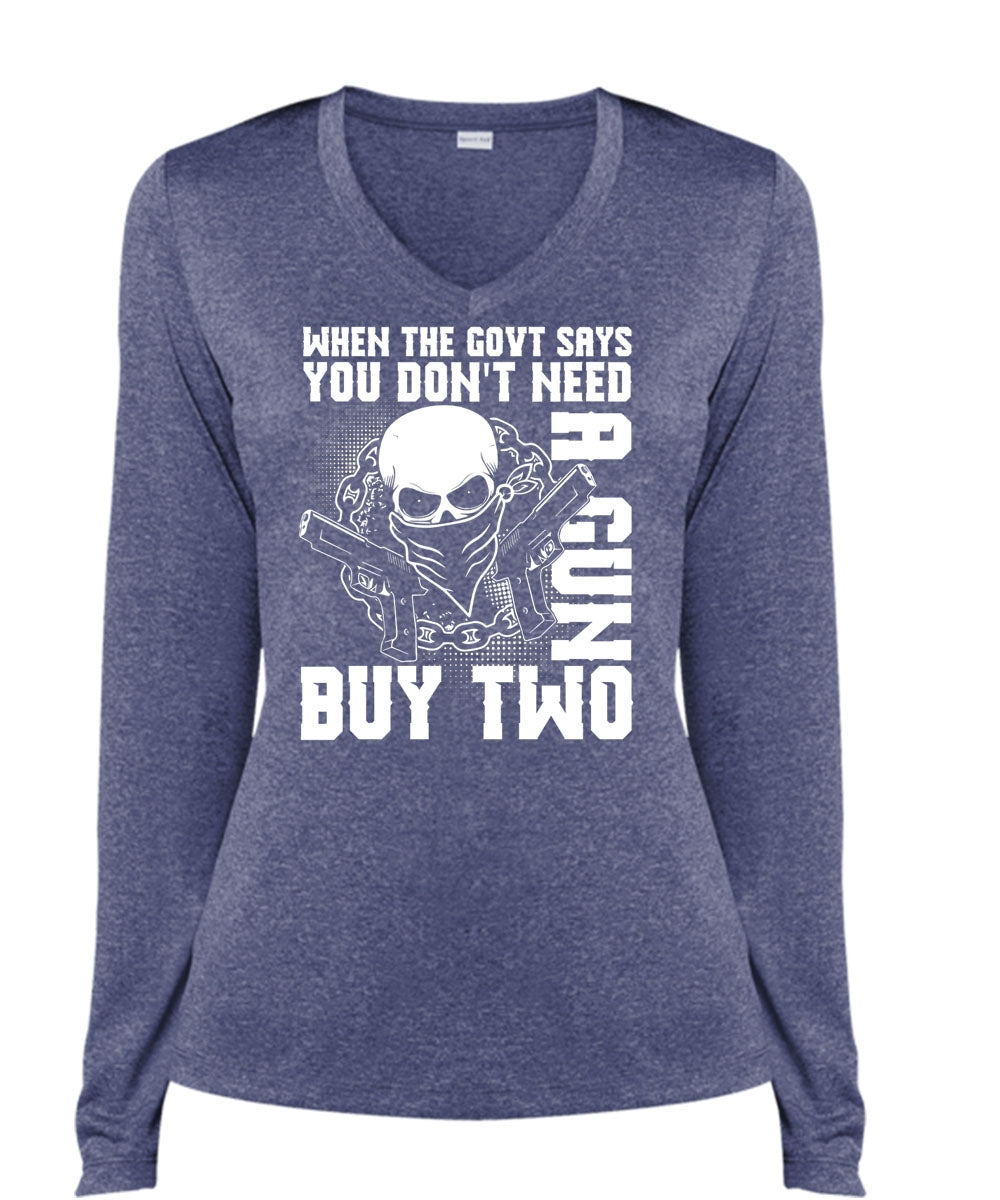 You Don't Need A Gun Buy Two T Shirt, Being A Gunner T Shirt, Cool Shirt (Ladies LS Heather V-Neck)
