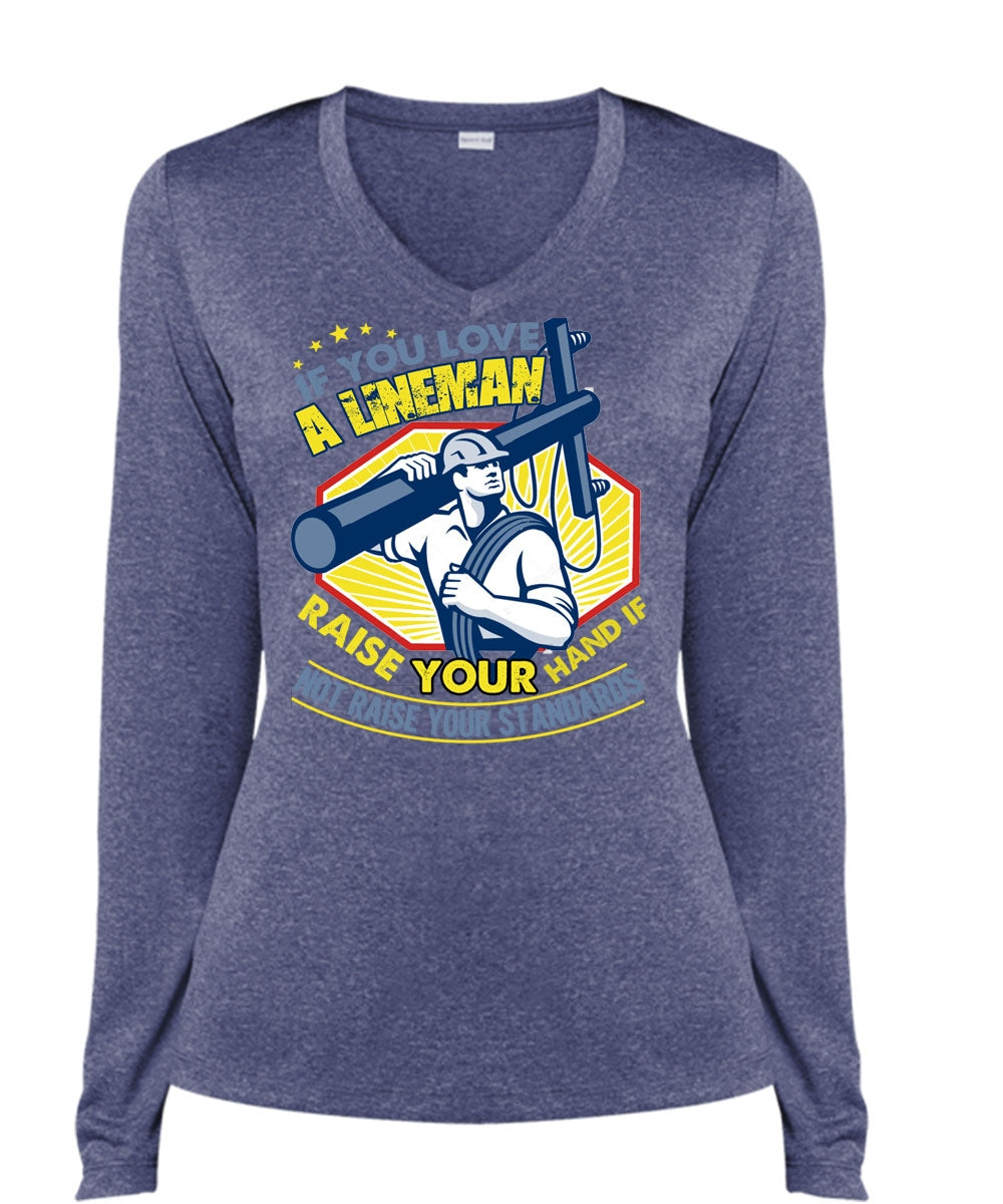 You Love A Lineman T Shirt, Your Hand T Shirt, Cool Shirt (Ladies LS Heather V-Neck)