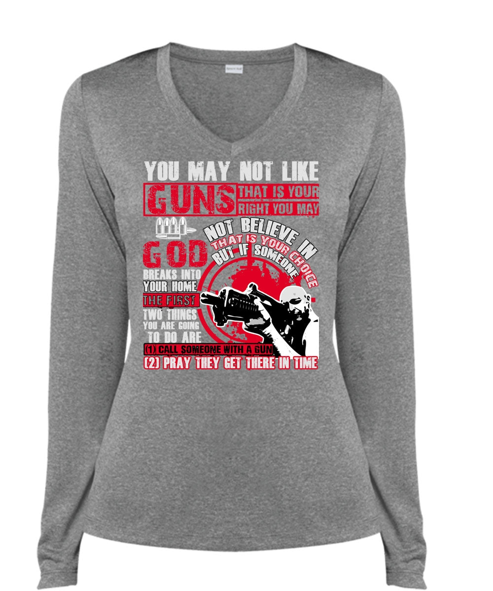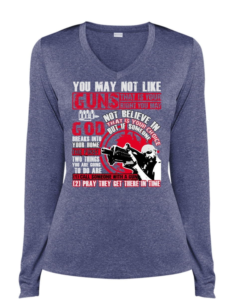 You May Not Like Guns T Shirt, Being A Veteran T Shirt, Cool Shirt (Ladies LS Heather V-Neck)