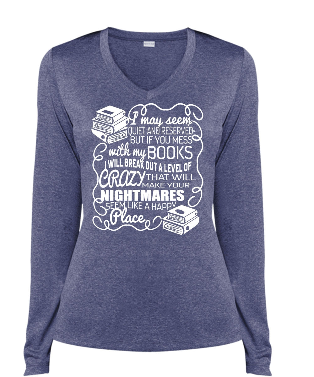 You Mess With My Book T Shirt, Make Your Nightmares T Shirt, Cool Shirt (Ladies LS Heather V-Neck)