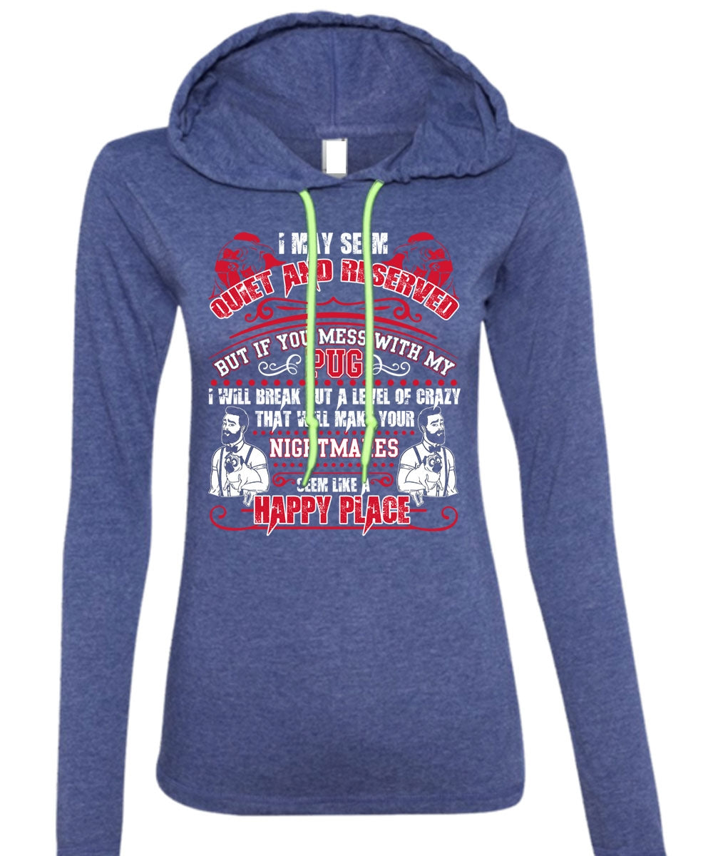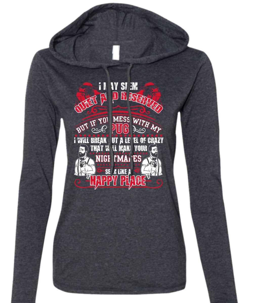 You Mess With My Pug T Shirt, Happy Place T Shirt (Anvil Ladies Ringspun Hooded)