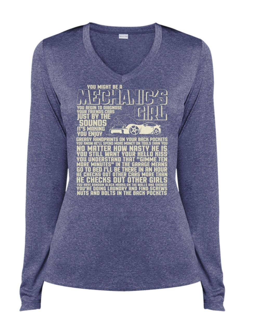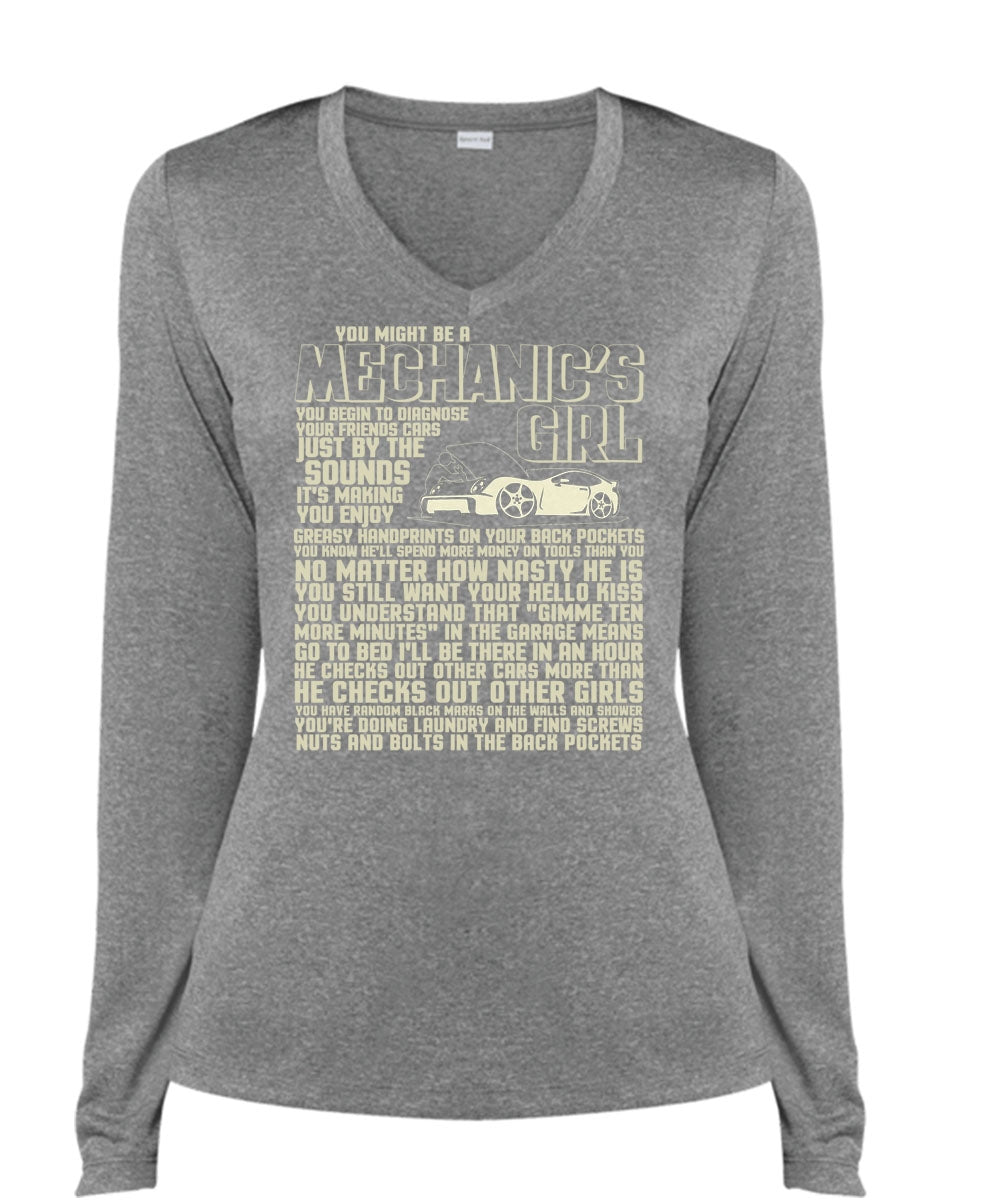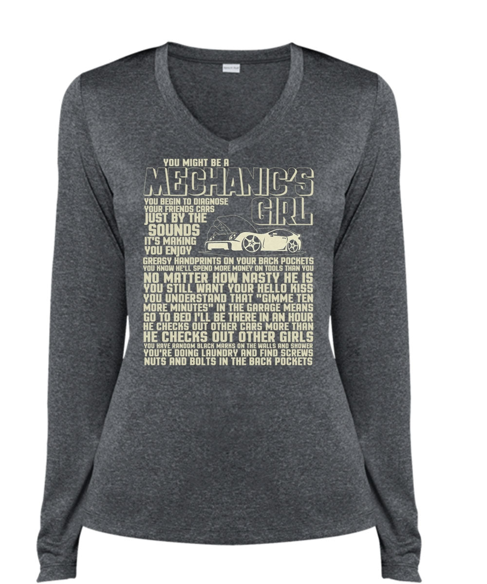 You Might Be A Mechanic's Girl T Shirt, He Checks Out Other Girls T Shirt, Cool Shirt (Ladies LS Heather V-Neck)