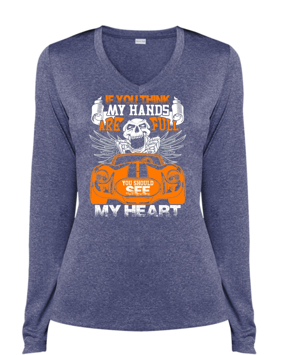 You Should See My Heart T Shirt, My Hands Are Full T Shirt, Cool Shirt (Ladies LS Heather V-Neck)