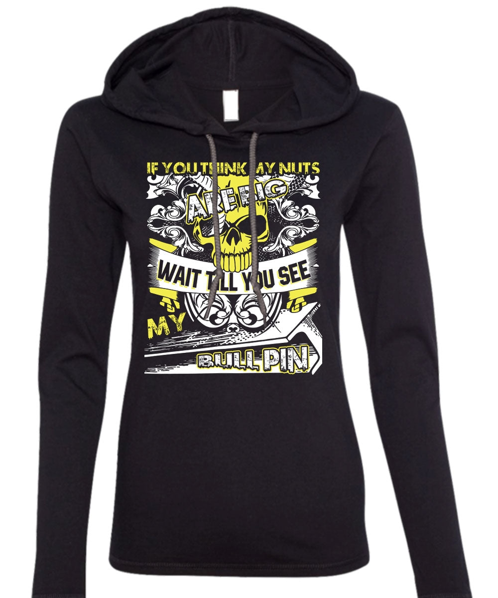 You Think My Nuts T Shirt, My Bull Pin T Shirt (Anvil Ladies Ringspun Hooded)