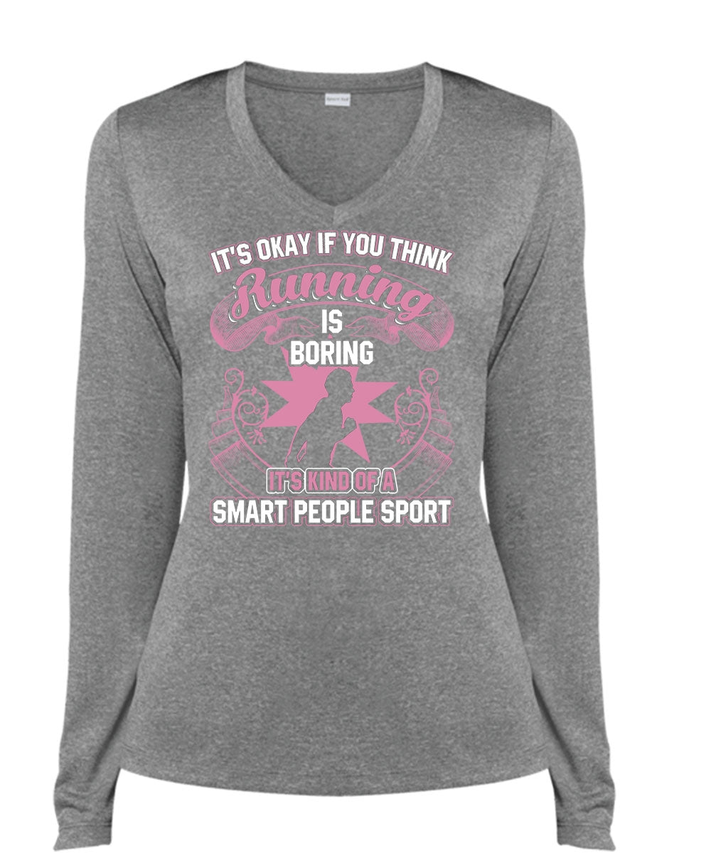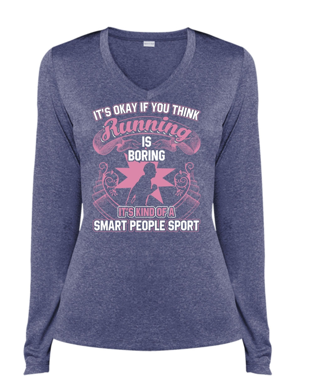 You Think Running Is Boring T Shirt, Smart People Sport T Shirt, Cool Shirt (Ladies LS Heather V-Neck)