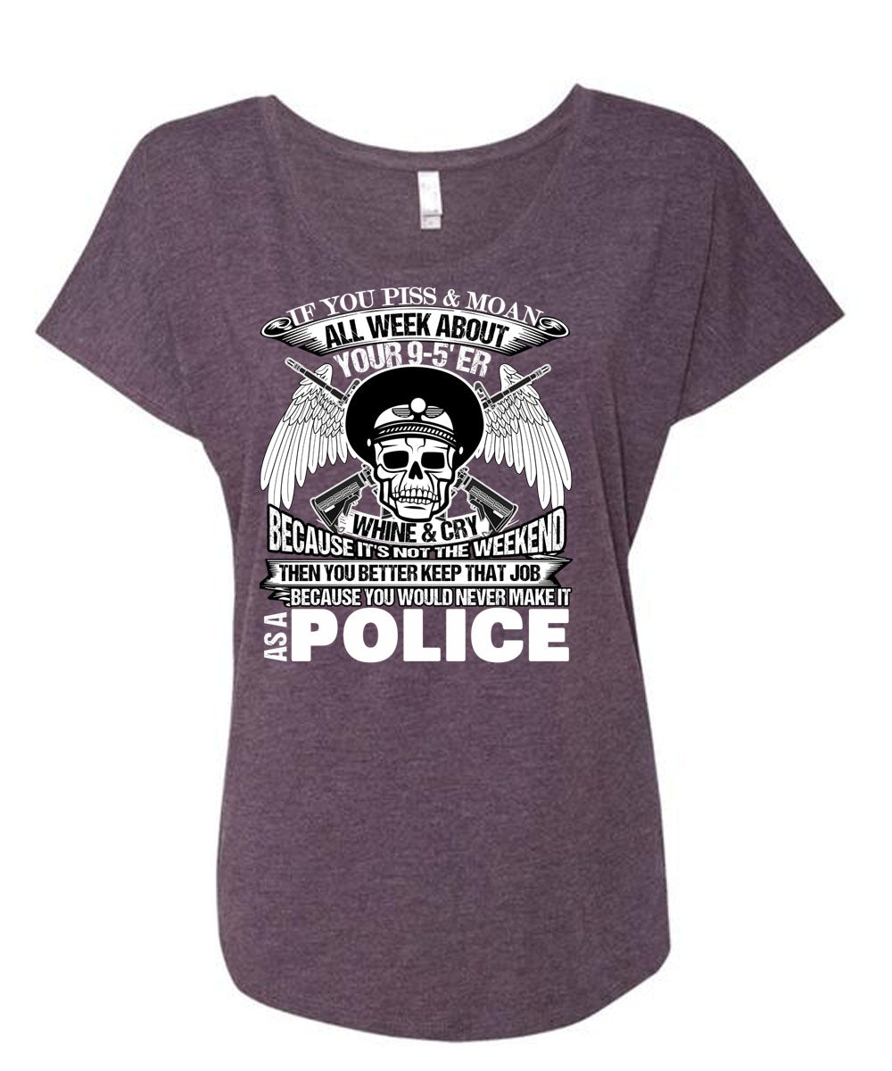 You Would Never Make It As A Police T Shirt, I Love Police T Shirt, Cool Shirt (Ladies' Triblend Dolman Sleeve)