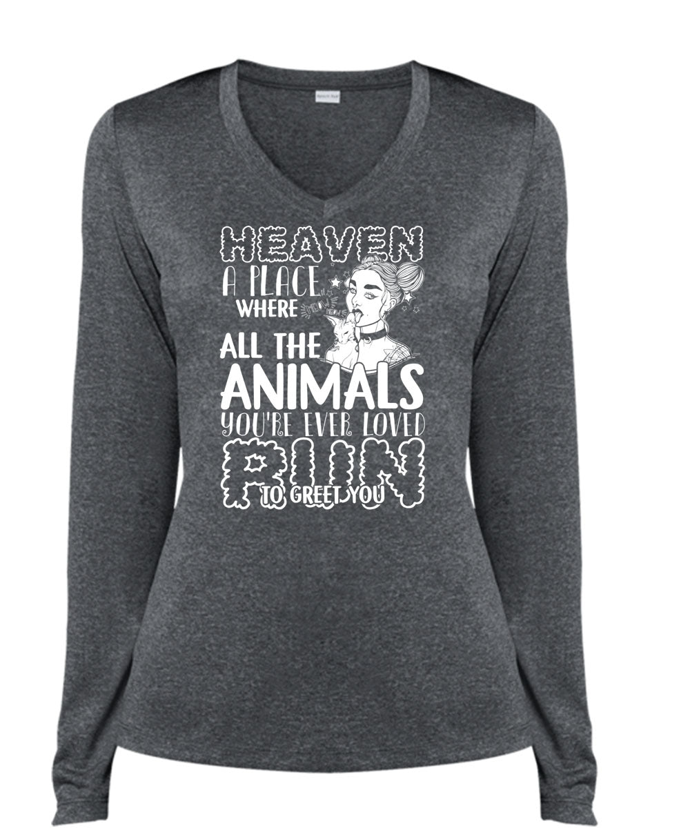 You're Ever Loved Run T Shirt, Heaven A Place T Shirt, Cool Shirt (Ladies LS Heather V-Neck)