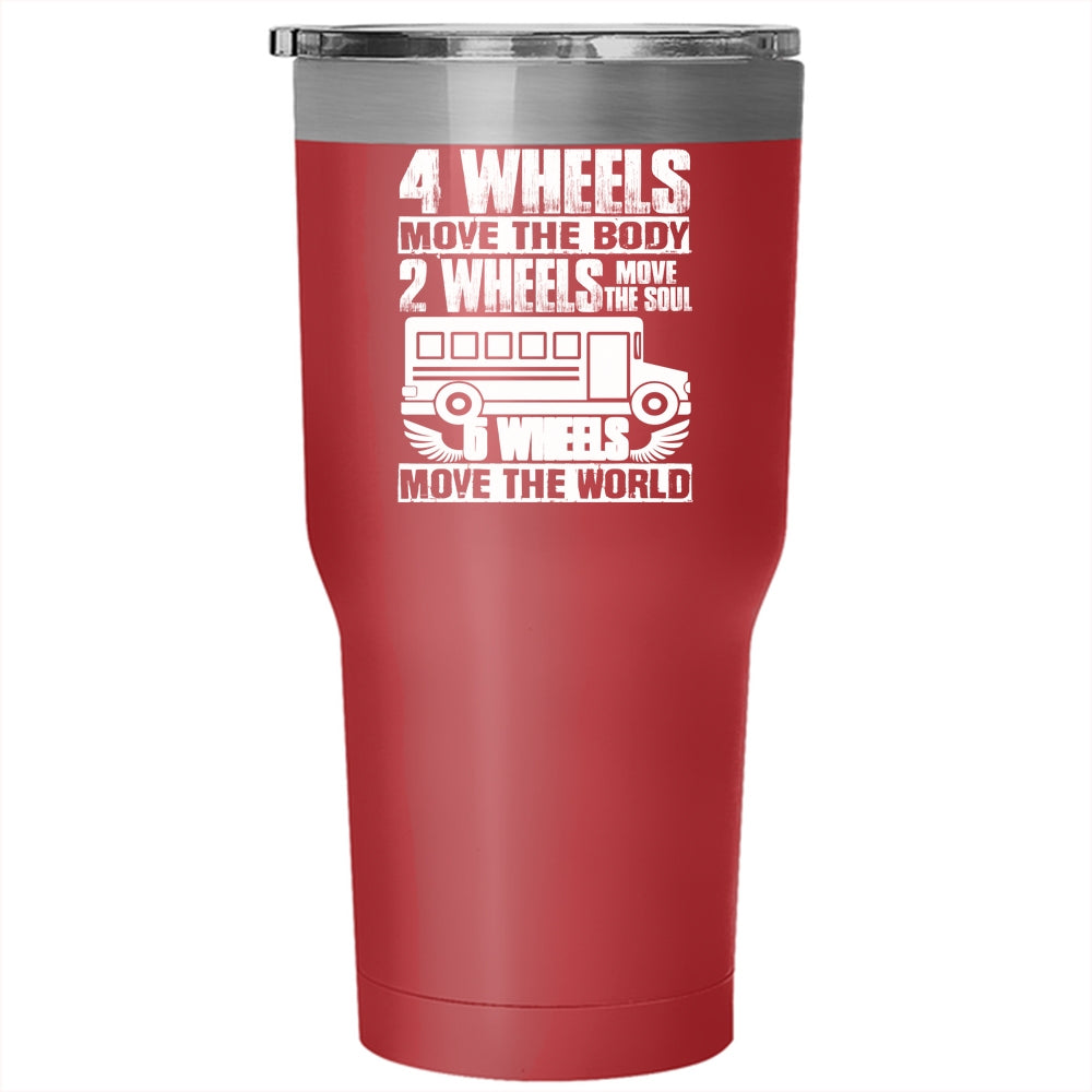 2 Wheels Move The Soul Tumbler 30 oz Stainless Steel, 6 Wheels Move The World Travel Mug