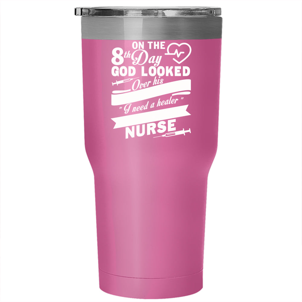8th Day God Looked Over His Land Tumbler 30 oz Stainless Steel, He Created A Nurse Travel Mug