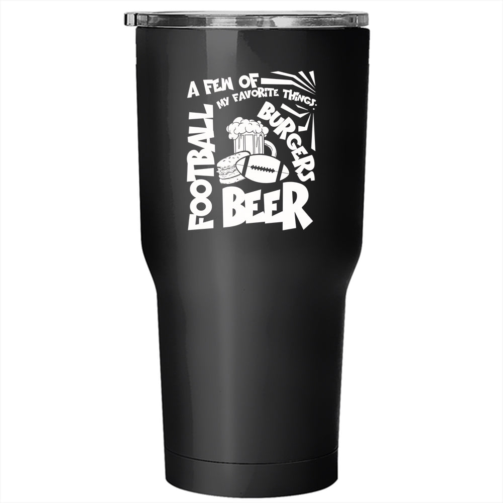 A Few Of My Favorite Things Tumbler 30 oz Stainless Steel, Football Beer Burgers Travel Mug